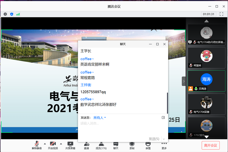 电气学院重视学生就业升学工作,把升学作为加强学风建设与检验人才培养质量的有力举措,考研升学率近几年稳步提升,2020年考研录取率达13.5%。为激发电院学子的考研热情,坚定考研信心,深化对考研形势的认识,提高备考迎战技能,学院举行考研“云分享·辅导”系列活动,助力2021年考研。(考研经验交流)“云分享”:传承优良学风,共享考研经验7月25日晚,学院举办线上考研交流会。交流会邀请了王梓横、魏养养、黄旭、殷文君和张帅等5名2020年优秀考研学生代表进行了经验分享。他们结合自己的考研经历,从考研动机、目标选择、备考技巧等方面做了详细的介绍,包括考研信心的树立、考研计划的安排、各科的复习方法、心态调整、复试技巧等进行了充分的交流。其中,被南京航空航天大学录取的黄旭说:“心之所向,行之所往,一切的努力都会有所收获,脚踏实地、坚持不懈才能取得满意的结果。”考取兰州交通大学的张帅分享了他的心路历程,并对学弟学妹们提出了宝贵建议,强调要有积极心态,学会劳逸结合,才能事半功倍。(专业知识辅导)“云辅导”