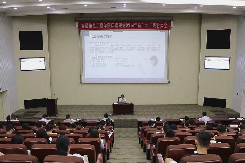 7月16日上午,安徽信息工程学院教育改革与发展总结文集和全球一流工程教育发展报告专题培训暨2020年辅导员校内培训专题讲座在新芜校区图书馆报告厅顺利举行。校长吴敏教授应邀参会并做专题讲座,副校长葛付才、学工系统全体人员及新入职辅导员参加会议。会议由副校长葛付才主持。 (会议现场)葛付才副校长首先介绍了《安徽信息工程学院教育改革与发展总结文集和全球一流工程教育发展报告专题培训》的研学背景和要求,他希望学工队伍能通过本次研学活动有所收获,在学校教育教学改革当中更有针对性的做好学生工作,提高工作质量,助力学校教育教学改革。 (副校长葛付才讲话)随后,吴敏校长以《突破传统、面向市场、聚焦应用、创新驱动》--安徽信息工程学院之教育原则为主题,进行专题讲座。他首先回顾了学校的办学历史,阐述了学校的办学定位、办学路径、教育理念和原则、优势和特色,用学校自教育教学改革以来所取得的丰硕成果鼓舞大家奋勇向前,敢想敢拼。接着,围绕学校确定的九大教育原则,结合学校对学工团队参与和融入学校教育教学改革的要求进行深