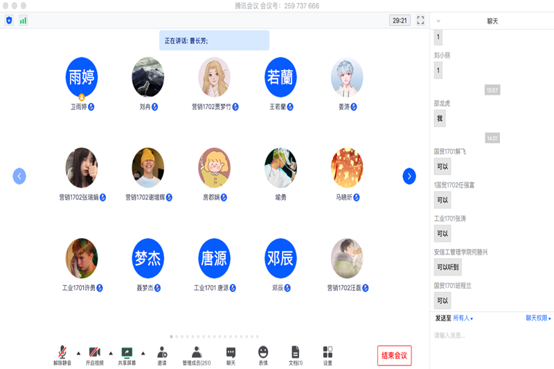 6月16日下午14:00,管理工程学院通过腾讯会议召开了17级学生实习启动线上宣传会,参会人员有管理工程学院副院长曹长芳、卢晓莉,院长助理何塍兴,学工主管邓辰,辅导员卫雨婷以及17级全体学生。 (图为会议中) 大会首先由辅导员卫雨婷介绍本次的会议主题及会议日程:1.曹长芳副院长代表学院领导讲话;2.何塍兴老师进行实习动员及实习管理细则的宣讲,介绍实习双选会的企业情况,招聘情况,学院订单班(国贸专业),(绩溪县重点企业招聘(管理及技术);3.卢晓莉副院长宣讲实习大纲及过程管理要求。其次由曹长芳对同学们实习健康安全做了详细的要求,并且指出要出门佩戴口罩,上班时注意交通安全以及个人的人身安全,要克服实习中的困难,遵循学校规章制度并按时完成实习学习要求;对考研实习的同学们做出了详细实习要求。何塍兴老师介绍实习计划与实习管理细则的宣讲,就17级管理工程学院学生企业实习三方协议、实习的企业选择原则、实习时间安排、实习成绩及实习成果总结报告做了详细的讲解。并指出要通过企业实习来增强同学们在专