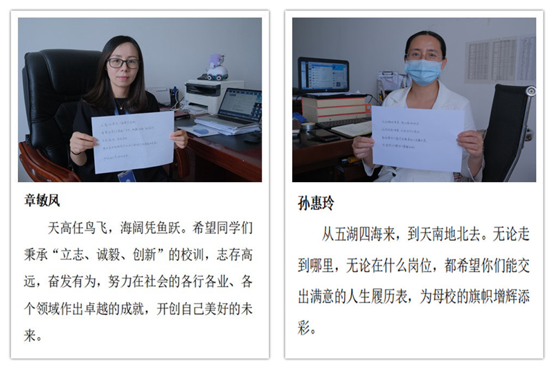 寒来暑往四年间的欢声和笑语就此定格成永远亲爱的毕业生们大学可能是你们人生中最难忘的时光四年于你青青校园成长收获四年于我春华秋实匆匆而过能够陪伴你们走过一程见证你们的成长何其有幸 辅导员毕业寄语: 计算机学院 汤菲菲:"生命就像一条大河,时而宁静时而疯狂;现实就像一把枷锁,把我捆住无法挣脱。这谜样的生活锋利如刀,一次次将我重伤。我知道我要的那种幸福,就在那片更高的天空,我要飞得更高,狂风一样舞蹈挣脱怀抱,翅膀卷起风暴心生呼啸,飞得更高"。我们败不降,最坚强,泪擦之后挺起脊梁。 我们情无疆,义坦荡,爱种在生命之战场。 我们勇敢闯,恕我狂,我们不是倔强张扬。 我们意气风发,我们生机盎然,我们勇往直前,我们是安信工计算机学子,我们有一个响亮的名字--青春! 计算机学院 张玉雪:“首先,感谢同学们和我一起度过人生中璀璨难忘的四年时光,看着四年里慢慢成长、成熟的你们,甚是欣慰,但更多的是留在我记忆中的温暖和感动。 其次,祝贺同学们从此进入新的人生旅途中的下一站,祝愿我最亲爱的学生们一