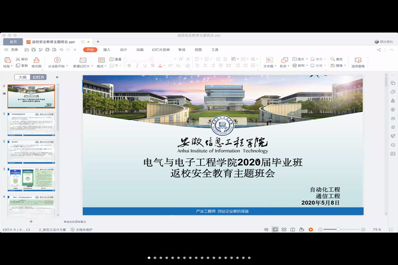 为进一步强化毕业班学生的返校疫情防范意识,积极充分做好返校工作准备,帮助毕业班学生梳理毕业前注意事项及学校有关政策要求,电气学院于5月7、8日晚连续召开返校主题班会。(会议主题)会上,辅导员首先逐字逐句解读了学校下发的《关于做好2020届毕业生返校工作的通知》的内容要求,强调学生返校必须慎之又慎,在返校前需要向学校提供个人安康码、行程轨迹、今日校园打卡记录及承诺书等材料。返校期间严格注意防护,保证自己的人身安全。其次围绕具体返校时间、学生接待工作及返校后学生管理问题等方面做出了具体讲解,着重说明返校机会只有一次,到校后学校实施封闭式管理,延期返校和不返校的同学可以直接向学校递交申请。(会议内容)会议还就毕业答辩、档案管理等问题进行阐述。辅导员嘱咐全体毕业班学生要建立返校离校工作台历,明晰各项工作时间节点,积极与辅导员和毕设指导老师进行沟通,以免影响顺利毕业。与会同学踊跃提问。此次毕业班返校“第一课”为学生返校工作的有效开展打响了“第一枪”,也让毕业班学生信心十足地继续应对挑战。(