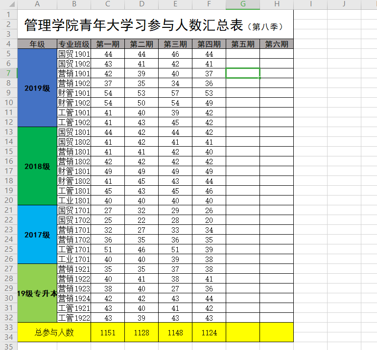 为积极响应共青团中央实施全团“青年大学习”行动的号召,加强共青团的先进性建设,充分发挥中国共青团的引领作用。管理工程学院线上组织全体团员参与第八季青年大学习。本次学习以“防控新型冠状病毒肺炎”为主题,将习近平总书记关于疫情防控的重要指示精神传递给广大青年。目前,学院的团员总人数除毕业班以外共1175人。在四期学习中,参学率分别为:97.9%、96.0%、97.7%、95.7%,高于全校平均参学率。此组数据不仅表明学院学生对待学习任务的高度重视,也体现了同学们对当前时事的关心,对党和国家的拳拳赤诚。本次学习使学院团员们意识到我国当下所面临的严峻考验,只有在党和国家的坚强领导下,全体国民万众一心,众志成城,终究会迎来春暖花开。同时也明确了作为一名当代大学生所肩负的政治使命和社会责任。 (学院青年大学习汇总统计)青年兴则国兴,青年强则国强。只要青年都勇挑重任、敢于拼搏,就能实现中华民族的伟大复兴。希望全体团员能够不断学习奉献精神,凝聚青年力量,共同推动中国共青团事业的发展。最后,祝愿管理工程学