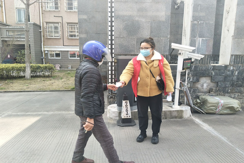 本网讯 3月5日是雷锋日,距离疫情暴发期已经过了近40天了,但是疫情防控仍处于关键时刻,尽管社区工作人员连日奋战在一线,但工作力量依然紧张。为了缓解社区防疫工作,家住在安徽省滁州市琅琊区的吴倩倩同学主动协助小区开展疫情防控工作。她在小区主要工作就是守好小区的门岗,为每一位出入小区的车辆做好登记号码牌、居民测量体温、查看出入证,虽然只是简单的工作,但她却觉得责任重大,因为守好小区门岗,就是给住在小区里的居民多一份安全感。(吴倩倩同学参加志愿活动)当问及吴倩倩为什么会参加志愿活动时,她说道:“作为大四一名即将毕业的学生,希望疫情能早点结束,能回到校园,珍惜老师和同学最后相聚的时光。同时作为一名党员,要积极响应党组织的号召,哪里任务险重,哪里就有党组织的领导工作,哪里就有党员先锋做表率,相信只要全国上下一盘棋,全国人民一条心,一定能打赢这场战役。”这些党员志愿者们在疫情防控的特殊时期,与人民群众站在一起,敢于担当,以“战斗者”的姿态肩负责任,在做好自我保护的同时,积极配合社区开展疫情防控工作。