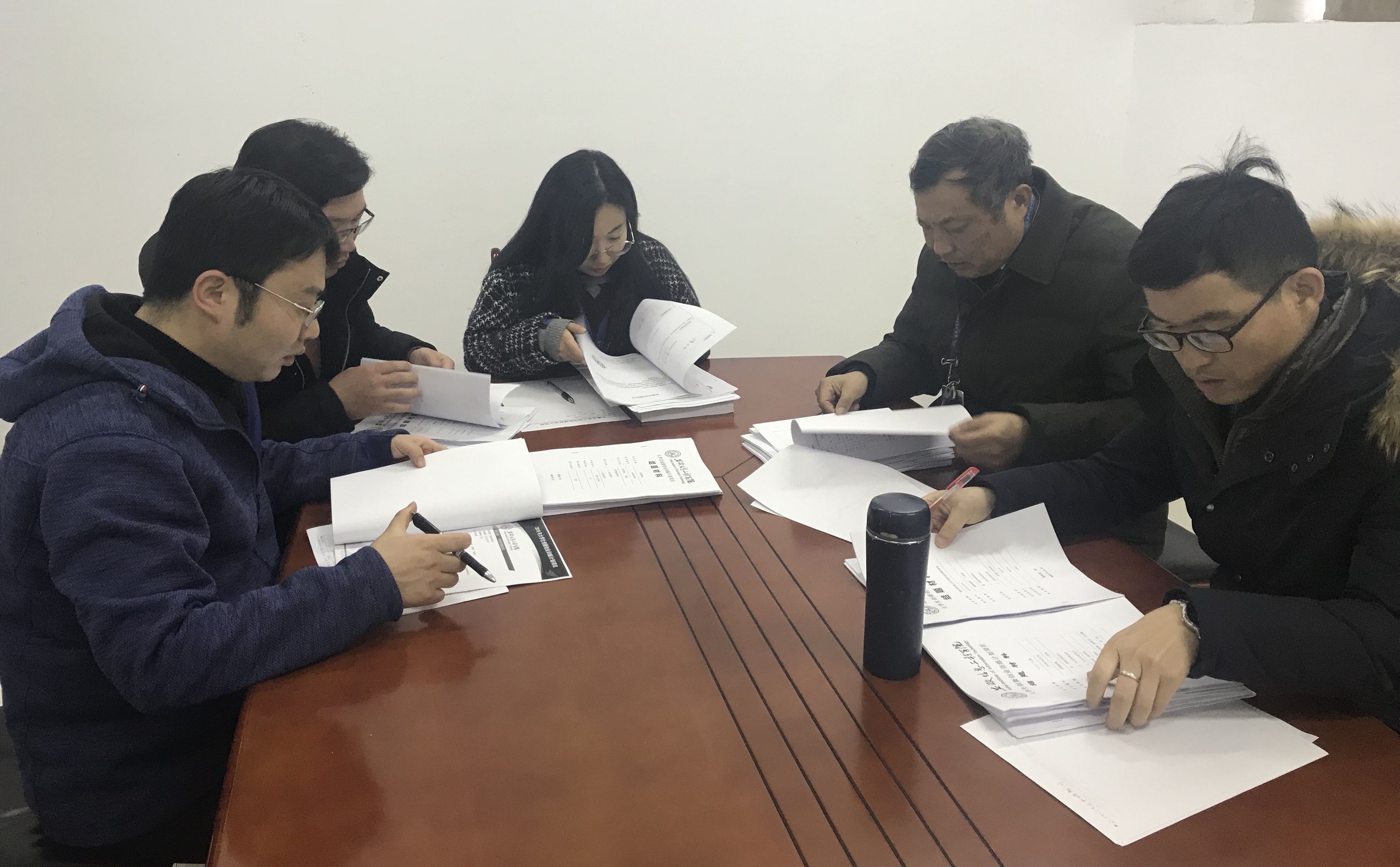12月19日,机械工程学院在求是楼E306会议室举办大学生创新创业训练计划项目评审会。机械工程学院院长柴阜桐、院长助理于鹏以及张继东、苗思忠、王清清等老师出席会议并担任评审,会议由于鹏主持。各位评审老师对31份项目结题材料进行审阅。结题项目既包括新兴技术的研究,如服务类机器人关节柔性驱动器的研究、基于太阳能充电式全自动家庭用拖地烘干一体机器人、无人机航行中环境检测设备研究等;也包括许多贴近日常生活的产品, 如新型办公椅、双饮型水杯、可移动式梨子采摘升降平台、水果采摘装置等等。其中一种谷物螺旋输送机采用SUS304材料进行焊接,切实有效的提高了谷物输送量以及利用率,保证在谷物送料过程中振动和噪音较低,同时不受地域和工作条件限制,从而更好地应用到农业生产和自动化生产线以及批量化生产中。另外,“基于太阳能充电式全自动家庭用拖地烘干一体机器人”项目入选教育部2019年第十二届大学生创新创业年会。(评审老师们审阅项目材料)通过查阅训练计划项目材料和现场审核,发现项目负责人基本能够按照项目任务书积