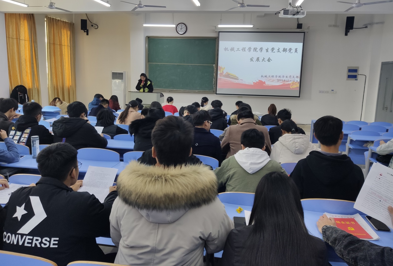 机械工程学院学生党支部党员发展大会于2019年12月12日下午2点在A3W102教室如期举办。学院学生党支部书记王淼昕、支委会成员、全体党员以及50名发展对象参加了本次大会。会议由计泽西主持。大会在嘹亮的国歌声中正式拉开了序幕。按照会议流程,50名发展对象依次上台宣读了入党志愿书,入党介绍人们针对发展对象的优点和不足做出了客观的评价。王淼昕汇报了学生支部支委会审查情况,与会党员对发展对象进行逐个讨论并发表意见后进行了无记名投票。到会正式党员一致通过了夏雪晴等50名发展对象成为中共预备党员。(发展对象宣读入党志愿)(王淼昕总结发言)最后几位入党介绍人代表对新成员提出中肯的建议与殷切的期望,学生党支部书记王淼昕总结发言,他首先强调党员同志要牢记自己的党员身份,认真思考自己的价值观、奋斗目标是否与党的宗旨契合,在日常的学习生活中要树立起党员的先锋模范带头作用,真心的去服务师生;其次,身为一名新时代党员,要不忘初心、牢记使命,有理想,有担当,争做时代先锋人。大会在国际歌中圆满结束。(大会在国际歌