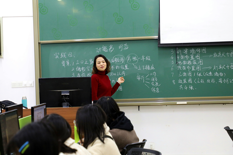 本网讯 采访骆琼的地点,是在新芜校区A4四楼、艺术设计学院的会议室里。陪同前去拍照摄像的大学生记者团的同学,是第一次踏入艺术学院的办公区域。一出电梯进入走廊通道,看到别致的学院标牌,触摸着涂着铁锈色的通道装饰,他说:这儿的氛围就是不一样,真真的叫艺术范儿。我们告诉他,这个学院的主体今年才从文津校区搬迁过来,你所看到的这些环境,都是学院老师自己设计的。今天要采访的老师,就是承担学院办公区域环境设计的主角:环境设计教研室副主任,兼教工党支部书记骆琼老师。熟悉又陌生的采访早在今年暑假期间,这里的环境还在装修的过程中,我们就曾来到过这里。那时的天气正值酷暑,整个楼层除了施工工人外,只有骆琼老师一个人。至今还记得当时与她的对话:“别的老师都外出旅游度假了,你怎么还一个人在这里当监工?”“方案是我们出的,但光出效果图、施工图还不行,施工流程、材料、工艺等这些,都要亲自把关。再说,我们教学也需要这样到施工现场体验,就相当于让自己参加项目实习了。”没想到,这样的对话,成了今天对她采访的预演。我们在会议室