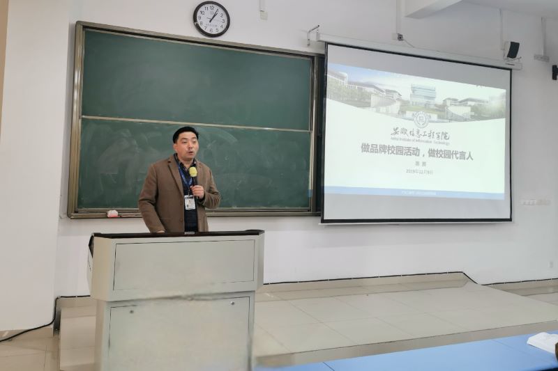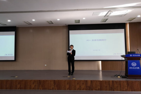 为帮助计算机与大数据学院的学生们了解人工智能的领域知识,以让同学们更好的理解与学习AI,丰富同学们的大学生活,计算机与大数据学院于12月4日中午12点,在东二503教室隆重举办了‘AI+’未来与我同行讲座。此次讲座由安徽信息工程学院教务处主办,计算机与软件工程学院和大数据与人工智能学院以及计算机协会承办。本次讲座特邀请科大讯飞高级工程师梅志主讲,讲座主要内容是让更多学生了解人工智能技术的发展现状以及人工智能在软件生产中融入策略及实际应用场景。 (图为支持人宣布讲座开始)讲座伊始,主持人邀请梅志工程师上台讲演。梅老师首先为在座的同学们大致介绍了人工智能‘AI’的相关知识,让更多的同学感受到AI真正魅力。随后,他围绕“人工智能产业发展及其现状、智能机器人概述及其发展、常见的AI功能介绍、AI应用的设计与实现”等方面进行了深入讲解,使同学们更加清晰地了解人工智能的产生、人工智能的发展和人工智能现状的相关知识。现如今,伴随着人工智能的是大数据、云计算、互联网,同时这也是梅志工程师给人工智能技术打