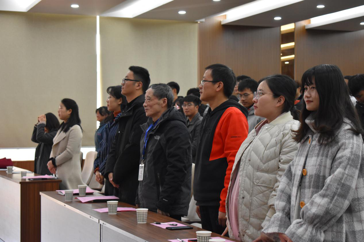 2019年12月4日下午3:00,安徽信息工程学院计算机与软件工程学院&大数据与人工智能学院团总支于东二503报告厅举办了“青马工程”开班典礼,计算机与软件工程学院&大数据与人工智能学院执行院长周鸣争,学工秘书夏林,辅导员范劭兴、王静月、王瑞雪、薛梦婷及班主任随小莉出席此次典礼。院团总支成员、优秀学生代表王晓庆以及本期“青马工程”班全体学员参加了会议。 (图为出席“青马工程”培训课开幕式的老师) 开班仪式在整齐嘹亮的团歌声中拉开序幕。开班伊始,周鸣争院长发言,表达了学院团总支对“青马工程”培训班的重视和对全体团干的期望,并宣布“青马工程”培训班正式开班。 (图为周鸣争院长发言)随后,班主任随小莉老师发言,她介绍了本期“青马工程”培训班的整体安排情况,期望同学们通过此次培训班的学习能够提高自身道德素养,树立良好工作态度,学习他人长处,总结经验,提升自我。同学们认真聆听,台下掌