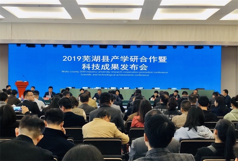 本网讯 2019年11月15日下午,借安徽省第八届装备制造产品(芜湖)产需对接会的东风,2019芜湖县产学研合作暨科技成果发布会在芜湖空港会展中心会议室召开,县四大班子领导黄维群、韦秀芳、杨文玲、范碧清等出席发布会。会议还邀请了市科技局副局长辛立民、市产业创新副主任葛雯,以及来自省内外高校教授、学术专家、企业家代表共300余人出席发布会。我校科技处处长高涛、机械工程学院副院长柴知章应邀参加会议。参加本次产学研合作项目签约的有浙江大学、东南大学、西北工业大学、北京交通大学、中国计量大学、安徽大学、安徽师范大学、安徽工业大学、安徽信息工程学院、安徽省农业科学院等15所高校院所,共计签约合作项目21个。会上浙江大学、合肥工业大学、安徽工业大学、南京工程学院、北京航天大学、安徽大学、安徽信息工程学院等院校作了科技成果发布。我校本次现场会共签约3家企业,分别是安徽美瑞尔滤清器有限公司、芜湖荣基密封系统有限公司、中汇瑞德电子(芜湖)有限公司,是签约企业最多的高校。充分显示了我校服务地方经济发展,推动