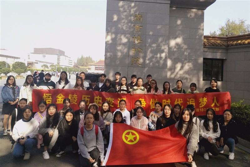 为贯彻习近平总书记的五大精神理念,积极落实中共中央关于在全党开展“不忘初心,牢记使命”的主题实践工作部署,同时促进良好的班风学风的形成,加强团队精神建设,完善一个集体的管理制度,2019年11月16日,安徽信息工程学院通识教育与外国语学院英语1801团支部踏上了以“悟金陵历史变迁,争做时代追梦人”为主题的团建之旅,与六朝古都南京开启了一场别开生面的历史邂逅。(英语1801团建合影) 在通识教育与外国语学院团总支书记魏晓飞老师的带领下,英语1801团支部乘坐大巴来到了南京市博物院,这座有着86年不平凡历史的博物院,如今焕然一新,对公众全面开放。作为“全国爱国主义教育示范基地”,南京博物院共拥有各类藏品43万余件,上至旧石器时代,下迄当代,可以说是一座巨大的中华民族文化艺术宝库。在陆续参观了历史馆、文化馆、数字馆等多个充满中国历史韵味的场馆后,博物院映射出的博大精深的中国文化,让到访的老师同学深感叹。同学们与千年文物隔空对话,历史的回旋,新时代技术的应用,深入地见证着国家的发展。(