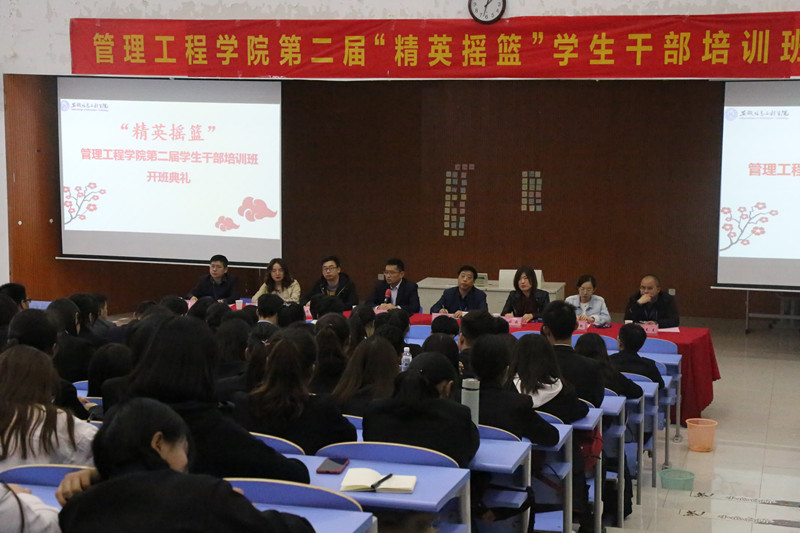 学生干部是学校实施教育管理工作的一只重要力量,是师生之间进行沟通交流的桥梁和纽带。去年,管理工程学院在全校首次开展学生干部培训班并取得了很好的成效,为了继续提高我院学生干部个人素质,不忘锻炼能力的初心、牢记服务同学的使命,管理工程学院于2019年11月7日下午在A1W101隆重举办第二届“精英摇篮”学生干部培训班开班典礼。校党委副书记、副校长葛付才,管理工程学院党总支书记、副院长曹长芳,学工主管邓辰,各年级辅导员及院学生会各部门负责人,大一、大二和专升本各班学生干部参加了此次会议。 在热烈掌声中,开班典礼拉开了帷幕,会议由邓辰主持。首先,财管1902班黄楷文同学作为此次培训班学生干部代表发言,他从自身出发,讲述了自己作为班干部的成长历程,向大家分享了自己一路走来的感悟,并代表全体培训班学员做出承诺:一定在本次培训班中努力学习,提高能力,不辜负学院的期望。接着,曹长芳介绍本次培训的意义,他强调,此次学生干部培训班是第一届培训班的良好延续,作为全校第一个开展学生干部培训班的学院,学