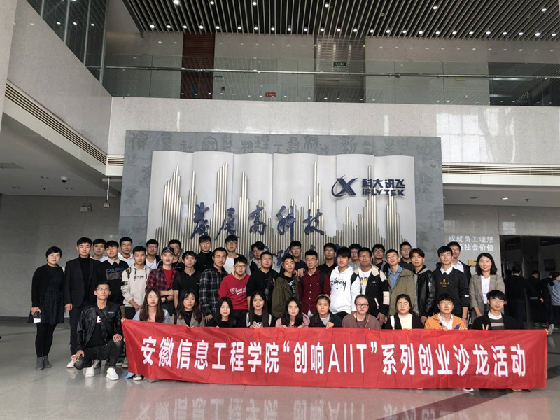 为提高我校大学生创业信心,坚定创业意志,开拓创业视野,2019年11月8日,我校大学生创新创业管理服务中心与通识教育与外国语学院联合组织大学生创业团队代表前往母公司---科大讯飞总部参观学习考察讯飞创业文化和创业精神。此次活动由大学生创新创业管理服务中心左红娟老师、通识教育与外国语学院综合素质教研室副主任陈巧巧和周启航老师带队,部分创业学生代表共计41人参加。图为讯飞总部集体合影 上午8:30点,参观团队准时从新芜校区出发,乘坐校车前往科大讯飞。经过3小时的车程,于11:30准时抵达目的地。讯飞智慧城市运作支持部综合服务部李菲老师全程负责此次参观的接待与讲解工作。按既定行程,同学们首先在科大讯飞食堂就餐,在午餐休息后,同学们在讲解员的带领下参观了科大讯飞展厅,然后走进科大讯飞智能化的会议室,聆听了科大讯飞的企业文化、发展历程、经营状况、核心技术以及今后的发展趋势的报告,随后陈巧巧老师就创新创业教育结合本次参观考察讯飞“成就客户、创新、坚守、团队协作、简单真诚、专业敬业、担当奋进”的企业文