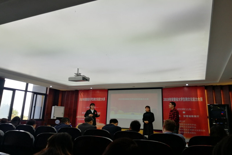 11月10日2019长三角高校跨文化能力大赛安徽赛区选拔赛即安徽省大学生跨文化能力大赛在安徽大学成功落下帷幕。来自安徽大学、安徽师范大学、安徽建筑大学、合肥工业大学、安徽工程大学、安徽医科大学的等全省共计25支代表队进行了为期两天两轮的激烈角逐。由今年新入职教师团队(邓高胜、王宏晨、朱梦圆、戴亚芬)指导的由通识教育与外国语学院17级学生黄盛杰、电气与电子工程学院18级学生方晓鹭与大数据与人工智能学院18级学生袁仁斌组成的参赛队伍凭借着出色的团队配合和英语基本功,一路披荆斩棘,表现出色,最终战胜十余所高校,荣获安徽赛区三等奖。 本次比赛环节包括案例分析、情景评述和评委提问3个环节。各组选手根据所给案例进行表演,展现跨文化冲突,并对之进行跨文化研究和分析,提出解决方案。9日上午的25进15的决赛中,在比赛抽签极为不利的情况下(最后出场),我校学子凭着扎实的英语实力和指导教师专业的策略助力,战胜多所公办院校,以第13名的成绩晋级第二天的决赛。 安徽省大学生跨文化能力大赛是安徽省教育厅主