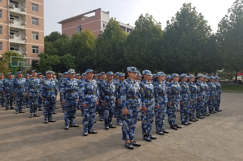 为进一步适应当下高校军训工作的发展趋势和特点,积极探索大学生军训工作新模式、新举措,推进新生军训工作的顺利开展,2019级新生军训带训工作学校武装部首创成立大学生军训团,从校内选拔、培养部分优秀大学生退役士兵组织带训工作,经过多次培训、考核,2019年9月11日,大学生军训团正式开始新生军训带训工作。(图为大学生军训团开展带训前培训、考核现场) 在部队教官的指导与配合下,大学生军训团有条不紊的开展军训工作。烈日当头,学生教官们言传身教,耐心细致地指导,对每个动作进行讲解示范,指导纠正,新训学生们在口令下用心领悟,全情投入,严肃认真地完成每一次举手、抬腿、转身、立正、对齐。一时间,嘹亮的口号、整齐的队列、矫健的步伐成为校园里一道道靓丽的风景线。(图为大学生军训团开展带训工作) “头要正,颈要直,口要闭,两眼向前平视”,学生教官们反复强调,用耳熟能详的口号来方便学生们记忆,用严格的教学方式帮助他们磨炼意志,锤炼品格,培养团队合作精神和集体主义观念。由于天气炎热,部分体质较差的同学出现