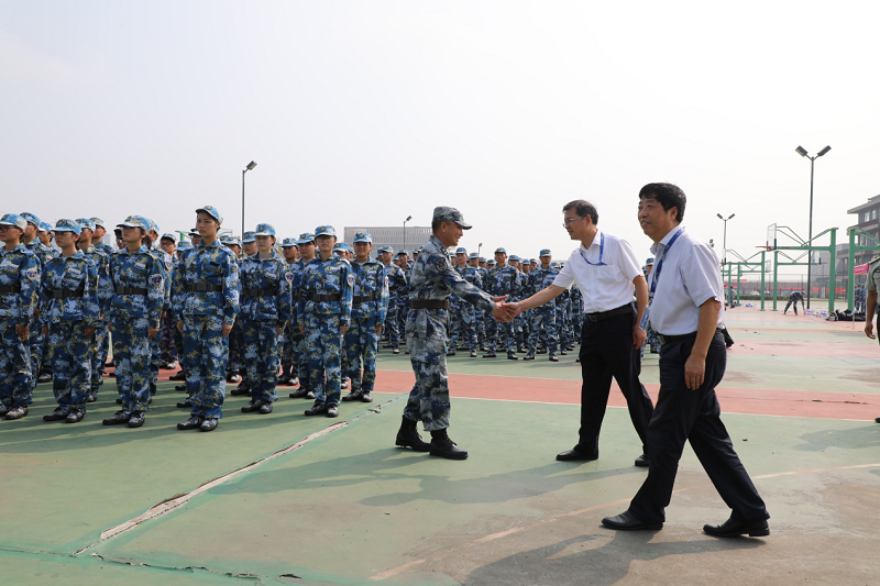 9月12日,军事训练第二天,副校长葛付才、副校长程业涛深入军训现场,在校武装部部长张祥、武装部干事方荣峰陪同下检查指导2019级新生军训工作,看望参训新生,并亲切慰问工作在军训一线的承训教官和辅导员。 军训现场,校领导一行认真查看训练情况、听取军训工作情况介绍,仔细询问参训学生适应情况和身体状况。训练现场,学生们列队整齐、军姿挺拔、口号嘹亮,以昂扬的斗志向校领导展示训练成果。 校领导一行对承训教官在军训期间克服高温天气,坚持高标准训练予以充分肯定,对坚守岗位、奋斗在一线的大学生军训团成员和辅导员表示感谢。慰问过程中,校领导对大学生军训团提出要求,一是我校第一次开展大学生军训团工作任务,要打好、打响大学生军训团第一枪;二是要加强指导,确保安全,希望所有承训人员要严要求,加强沟通交流,及时掌握参训学生情况,有问题及时协调解决,确保军训安全顺利。 承训部队教官感谢学校领导的关怀,并表示一定按照学校军训的统一安排与部署,坚持科学施训、安全施训,克服困难,团结协作,争取高标准、高质量地完