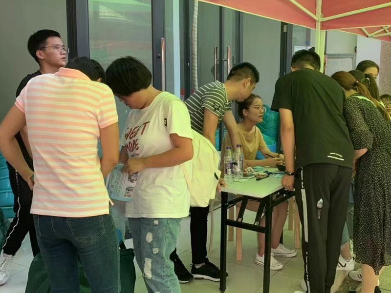 2019年9月7日是安徽信息工程学院迎接19级新生的日子,这一天,两个校区的各大学院齐聚体育馆,为新生的到来做好前期准备,学院高度重视新生入学报到工作,预先成立新生接待工作小组和办公室,我院学生会也多次召开迎新工作会议,详细部署迎新工作安排,确保可以为新生和家长提供全方位的入学服务。 9月7日这一天的温度可谓是芜湖县近期以来的最高温,太阳高照天际,炽热的骄阳遍布学校各个角落。视线转移到通识教育与外国语学院的报到处,学院的院长、辅导员老师以及17、18级学长学姐第一时间来为新生做好报到工作,接着由志愿者们协助带到寝室做好安置事宜,志愿者们迎新的热情丝毫没被天气影响,他们往来奔波,手里帮拿着新生大大小小的包裹,额头上的汗珠不迭,更不忘认真地回答着新生与家长提出的问题。(19级迎新结束留影) 已而夕阳西下,19级迎新工作也正式落下帷幕,新生们将在学校的安排下做好后期军训以及上课事宜。对于忙碌了两天的志愿者们来说,这次迎新也是他们人生中不可或缺的难忘体验。迎新结束,志愿者们齐聚食堂二楼,