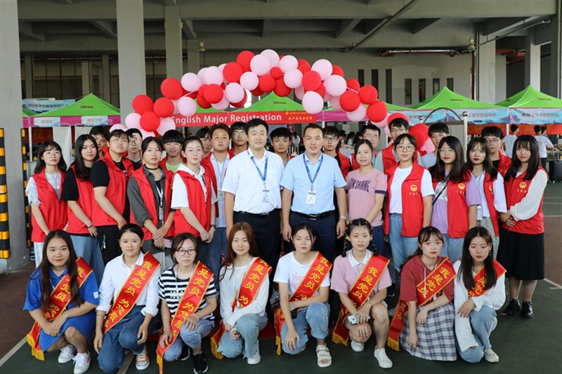金秋九月,天朗气清,一年一度的迎新在2019年9月7日拉开帷幕,这一天,来自全国各地的19级新生齐聚安徽信息工程学院,正式开始了一段新的学习生活,掀开了人生的又一新篇章。(通识教育与外国语学院迎新现场) 早上七点半,迎新正式开始,各学院的迎新志愿者在体育馆早已准备就绪。通识教育与外国语学院的张爱兵副院长,魏晓飞老师以及涂遥老师同17.18级学姐学长们在场地早早等候,精心准备的会场装饰格外绚丽,五彩斑斓的气球拱桥搭配着夺目的签名墙,还有精彩纷呈的照片墙,似乎是向新加入的19级成员诉说着外院的活力与魅力。(校长亲赴迎新现场) 随着第一位同学的到场,迎新征程正式开始,新生们办好入学手续后,由志愿者们帮忙携带包裹引导到A17与A20寝室楼,并为新生们答疑解惑,往来不断,挥汗如雨,家长对学院的招待工作赞叹不绝。学院对此次19级迎新工作高度重视,安徽信息工程学院吴敏校长与随行领导亲赴通教外院迎新现场同外院院长以及副院长交流了外院的迎新情况,并看望新生及工作人员,对外院的迎新工作以及一直以来的