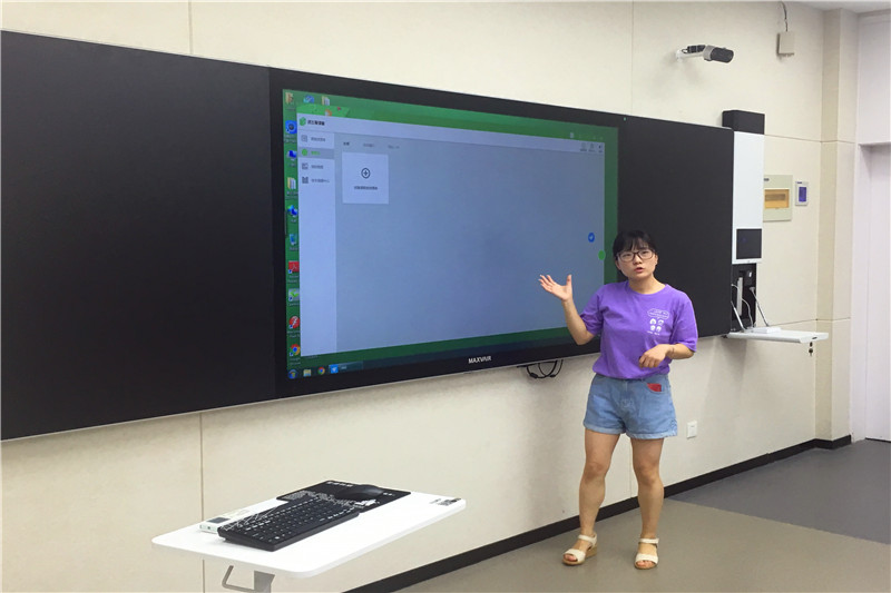 本网讯 为贯彻落实十九大报告关于加快教育现代化的明确要求,全面落实以学生为中心的思想,充分发挥智慧教室的功能,配合教师开展课堂教学方法改革,教务处于7月17日在文津校区东一104教室举办了首场讯飞“爱课堂”智慧教室应用专题培训,来自各学院的60余名老师参加了培训。由来自通识教育与外国语学院张银银老师为教师进行培训。(张银银老师作现场培训)教务处副处长程玉林主持了本次培训,他表示:“智慧教室”是一种“互联网+”教学模式和先进的信息技术手段相结合的、富有智慧的课堂教学环境。学校为推进教学改革,建设了包括智慧教室在内的一批信息化教学环境,希望可以为广大教师提供新的教学体验,提升学生学习热情,提升教学效果,希望教师能够积极主动地探索,打造更加智能高效、富有智慧的课堂,也欢迎大家对智慧教室建设及教学模式探索提出更多建议。 (程玉林主持培训)张老师首先对“爱课堂”智慧教室的硬件及配套设施进行了介绍,进而将智慧教室的主要特点和功能进行了演示说明,包括主显示屏和分屏的设置、课程录制、数据分析、建课备课流
