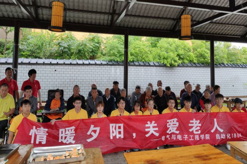 为培养大学生社会实践能力以及提高社会公德意识,弘扬中华民族敬老爱老的传统美德。7月13日上午,电气与电子工程学院自动化1804暑期“三下乡”服务团队来到花桥镇横岗敬老院进行了慰问走访。 走进横岗敬老院,映入眼帘的是一座大院,道路两旁绿树成荫,“爱心”队员们受到了老人们的热情欢迎。据敬老院管理人员沈叔叔介绍,这座敬老院已建成十多年了,现有100多位老人在此安享晚年。刚到小院,志愿者们就忙活了起来,有的为老人打扫卫生、整理内务;有的陪老人话家常、读书念报;有的帮老人准备水果和老人一起打牌下象棋,听他们讲讲过去的故事……81岁高龄的黄婆婆是位“五保户”,已在此居住了18年,看着志愿者忙上忙下,紧紧拉着他们的手亲切地话起家常,欢声笑语充满整个敬老院。此次探望队员们还发现了一位98岁高龄的抗美援朝的老兵。这位爷爷参加了大大小小的诸多革命战役,他一边拿出他的纪念胸章,一边为学生们讲述那些年代发生的故事。队员们深深地体会到,没有这些老一辈的革命先驱,就不会有现在现在安定的幸福生活。为了丰富老