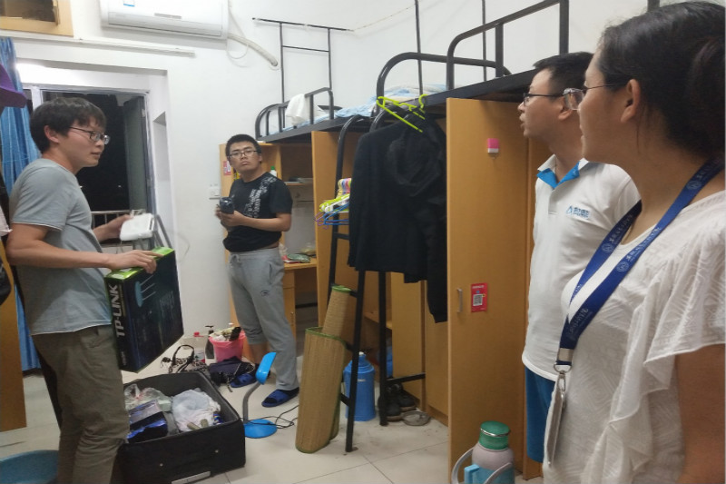 又是一年毕业季,为切实做好2019届毕业生安全离校工作,确保毕业生文明离校,6月19日晚,电气与电子工程学院副院长孙惠玲,学工秘书吕海涛,2019届毕业班辅导员华静、李超君一行深入毕业生宿舍,看望2019届毕业生并送上慰问与祝福。