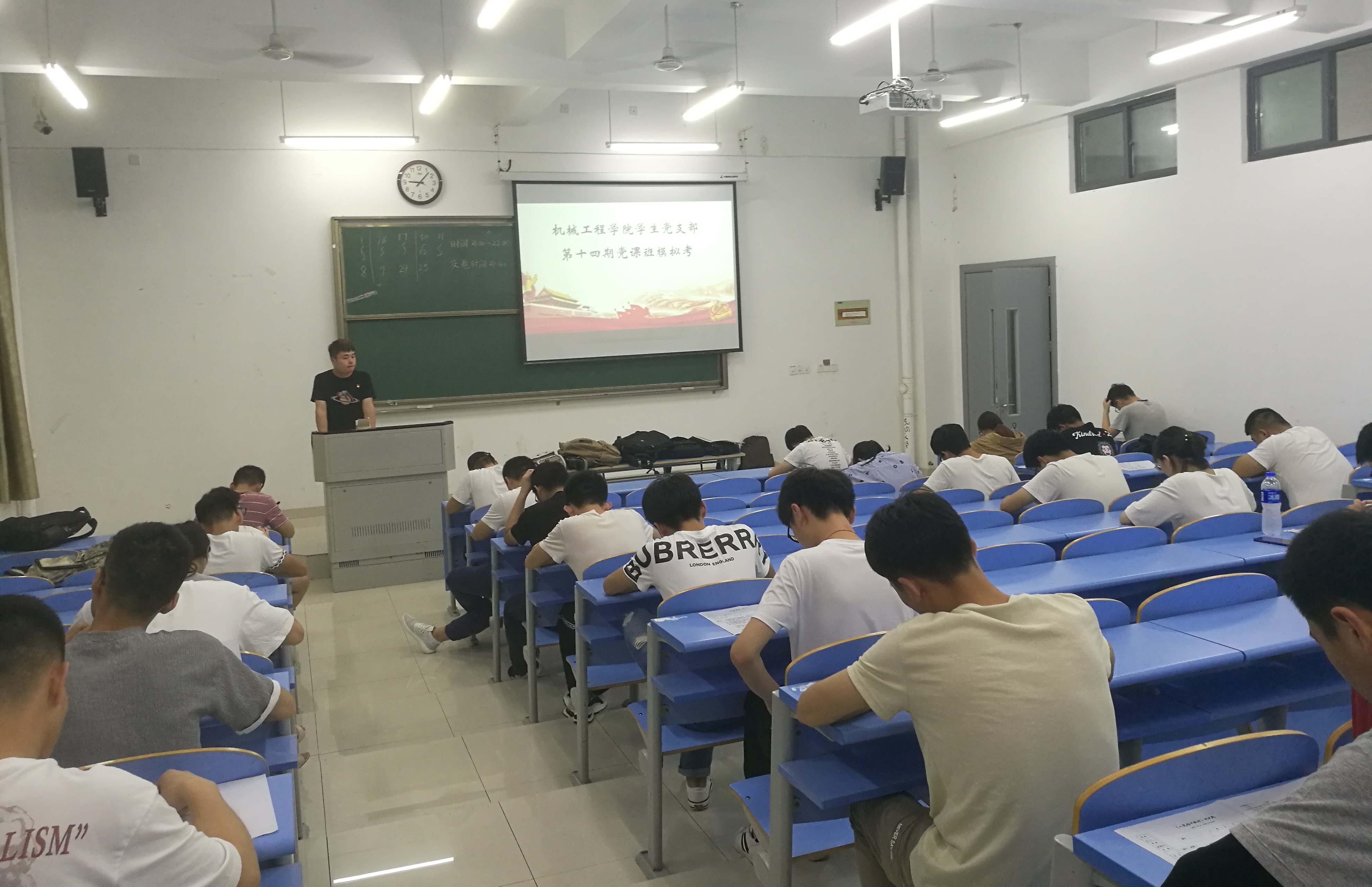 为了加强机械工程学院党课培训班学员的党性修养,扎实入党积极分子和发展对象的理论知识,把好入党关,机械工程学院学生党支部组织第十四期党课培训班学员,于6月3日21:00在A1S101、S103、S105教室进行党课模拟考试。(机械工程学院学生党支部第十四期党课班模拟考试)(考场秩序井然)考试开始后,考生有序入座,在监考人员强调考场纪律要求后,分发试卷。参加考试人员遵守纪律,认真答题,考场气氛严肃。经过一个小时的作答,所有人都按时完成答卷,并有序交卷离开考场。本次考试,不仅是对党课培训班全体学员本期党课学习成果的一次检验,更是对党的理论知识、思想方针政策的一次梳理。相信,通过本次考试,会进一步夯实学员们关于党的理论知识,提高他们的党性修养,端正他们的入党动机,从而坚定政治立场,坚定信念跟党走。( 文、图/周超 校、审/孙奇慧)