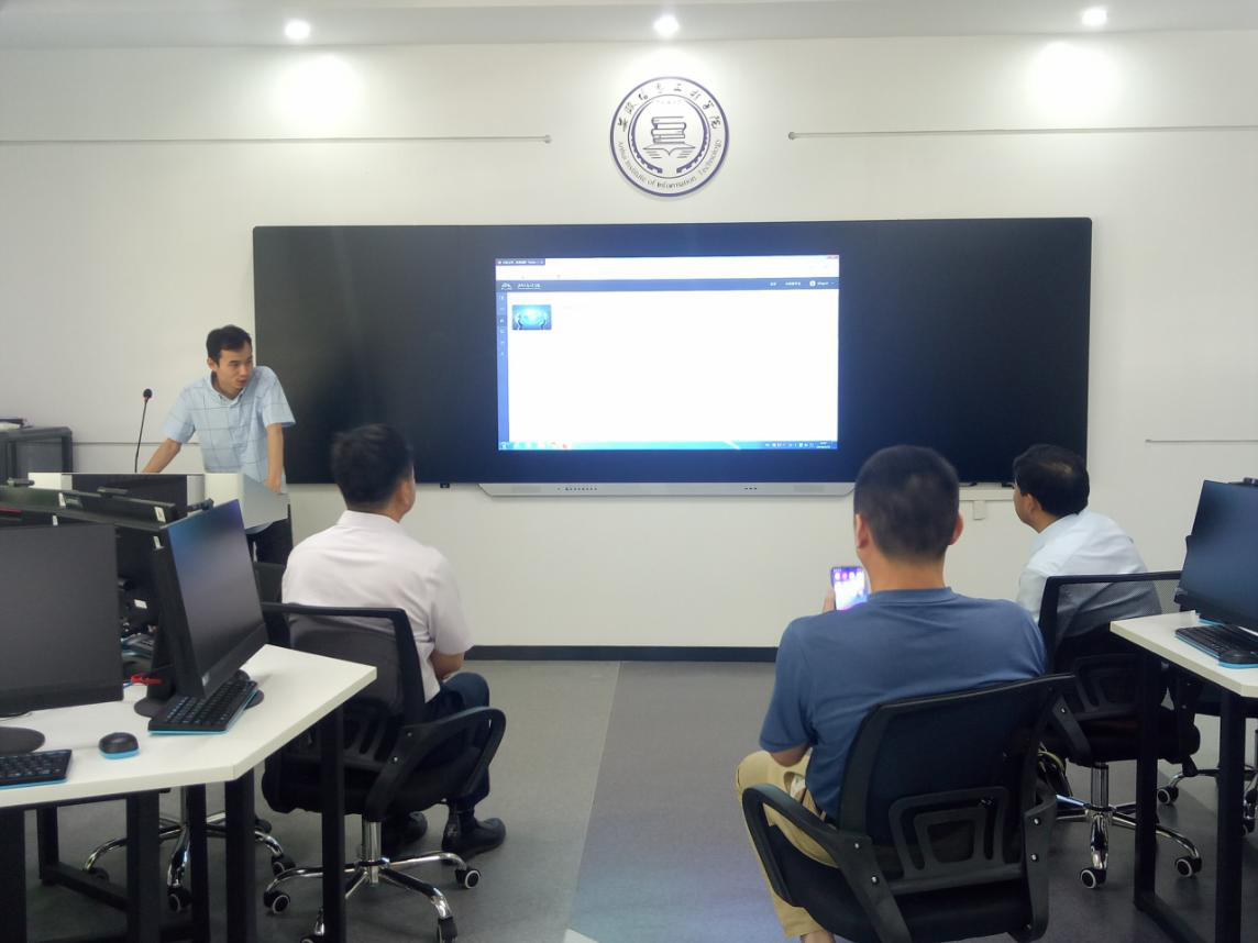 2019年5月29日上午10:00,淮南职业技术学院副院长朱云辉一行来我校参观交流。大数据与人工智能学院院长助理万家山携实验室主管赵林、大数据与人工智能学院院双师蔡兵接待了此次来访人员。在赵林的带领下,朱云辉副院长一行先后参观了大数据实验室、AI应用实验室、AI创新实验室、智能之翼实验室和计算机视觉创新实验室。期间,蔡兵详细介绍了博思智慧学习平台的基本情况、AI实验室的相关配置和整体规模和我校关于人工智能研发的一些情况。(图为蔡兵老师向来访人员做相关介绍)参观结束后,双方在东一210进行了座谈会,会议伊始,万家山对朱云辉副院长一行的到来表示热烈的欢迎,并介绍了我校两校区的基本情况。随后,双方就学院的课程建设、人才培养中的教学改革等问题进行了深切地讨论,朱云辉对我院取得的成果给予了充分肯定。(图为座谈会现场)通过此次参观交流,淮南职业技术学院一行对我校大数据与人工智能学院的教学和人才培养模式的改革体系、科研情况以及AILab建设等有了充分的了解,对学校概况、教学模式、教学理念有了更加深入的