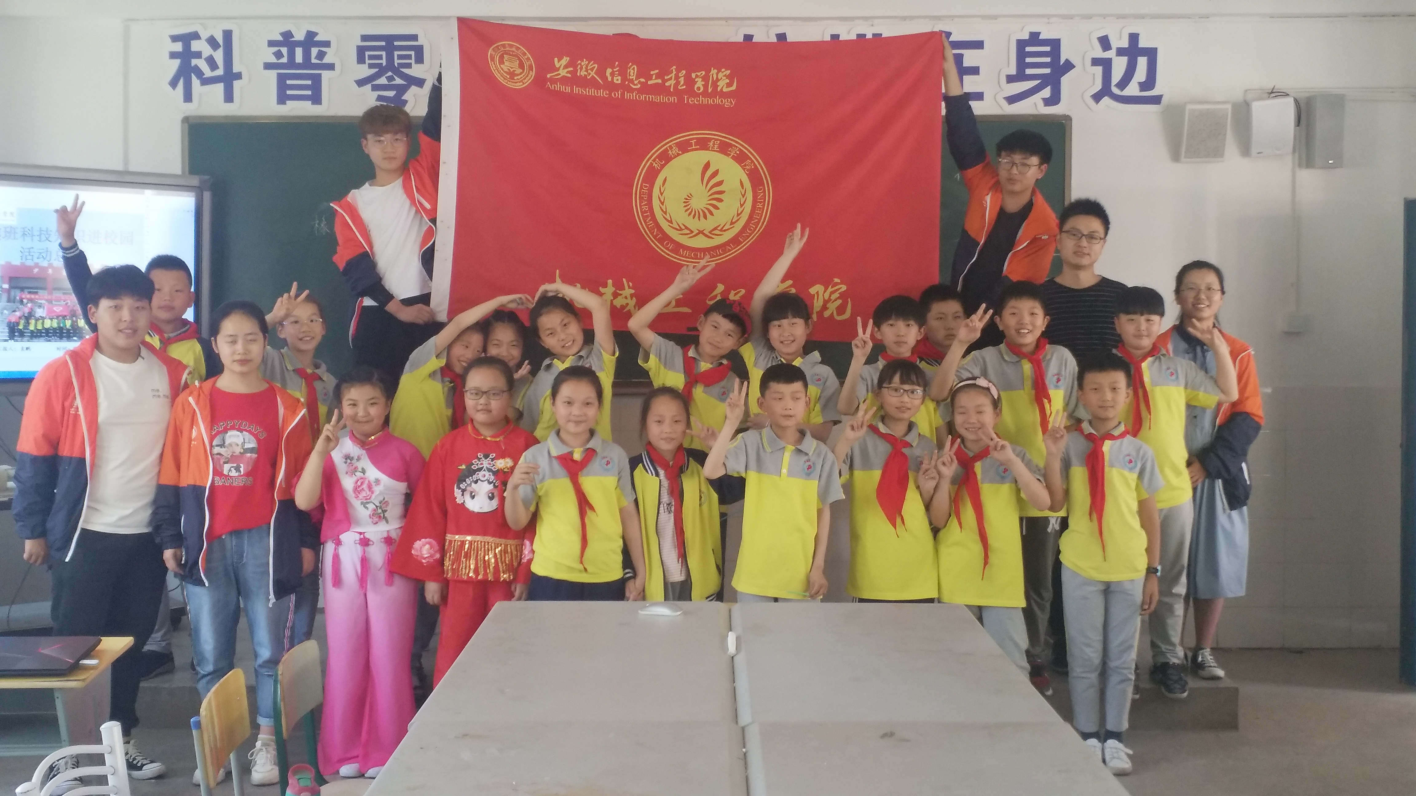 5月22日一大早,机械工程学院的志愿者们就忙碌起来,准备当天下午所需要的“科技进校园”活动的实验。因为这是本学期最后一次活动,志愿者们想把最美好的一面展现给小朋友们。为此,他们精心准备了两个实验以及前八次志愿活动的视频合集。(科技进校园深受孩子们的喜爱)下午1点,志愿者们出发前往芜湖县二中小学部。刚到教室,迎接志愿者们的是孩子们的一片欢呼声,让志愿者们顿生暖意,一股不舍之情涌入心头,红了眼眶。志愿者们整理好情绪并开始了第一个物理小实验,先给孩子们介绍了有关摩擦力的相关知识。孩子们表现出了极大的兴趣,在志愿者的指导下,他们纷纷上台进行实验,实验非常成功,孩子们初步了解了有关摩擦力的相关知识,并且锻炼了他们的动手能力与分析能力。第二个实验是给孩子们介绍了空气流速知识,让孩子们第一次对平时呼吸的空气产生了探索的兴趣,随后每个人都进行了一次感受实验,进一步体会到物理的魅力,培养了孩子们的学习兴趣和求知欲。(志愿者展示实验步骤)(孩子们聚精会神听讲解)两个实验结束后,志愿者告诉孩子们这是本学期最后