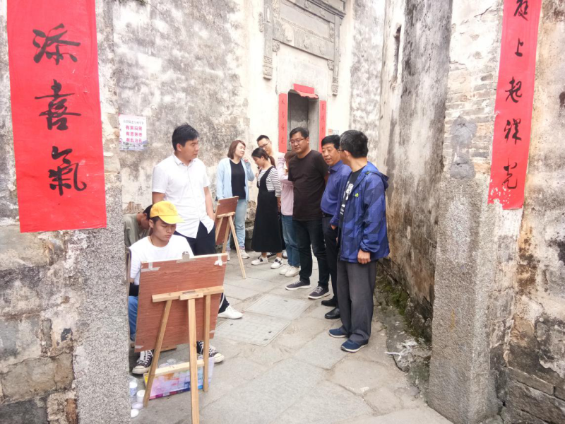 为了解艺术设计学院18级学生外出写生情况,5月21日下午,副校长葛付才在艺术设计学院执行院长、副院长周建的陪同下,来到皖南写生基地屏山,看望在这写生的我院200余名学生。 (校领导指导学生写生作品)一到写生基地,副校长葛付才,艺术设计学院执行院长,副院长周建一同深入屏山大街小巷,看望写生的学生,观摩指导学生的作品,对学生的绘画作品给予了肯定,并亲切的问候学生在外食宿和学习方面的具体情况,与学生一起回顾徽州文化历史,提醒学生外出写生一定要注意安全,遵守纪律,圆满完成写生任务;董毅肯定了同学们不怕苦不怕累的精神,另一方面要充分利用这次外出写,激发灵感,积累素材,提高自身的艺术素质和修养。 (校领导指导学生写生作品)本次艺术设计学院外出写生考察,是实践课程的重要环节,是将理论与实践相结合的最佳途径方式。通过屏山写生,使艺术设计学院同学们能够有机会更深入了解皖南徽派文化及当地的自然风光,提高学生的审美情趣和写生技术手法,锻炼了学生艺术设计思维和创作能力,开阔了眼界,为以后的艺术创作垫定了基础。