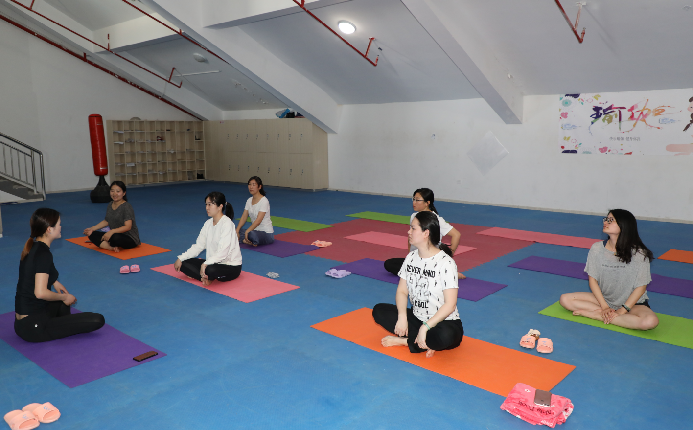 为丰富教职工的文化生活,创造和谐健康的工作氛围,改善长期的工作压力造成人体的亚健康状态,使职工在工作之余享受自信、健康、快乐、从容的心情, 5月22日下午,安信工校工会特举办瑜伽活动。此次活动特聘请了专业教练进行指导。在教练的带领下大家开始第一堂瑜伽课。首先是瑜伽冥想环节,教练教授大家如何做腹式呼吸,在平静深长的呼吸中抛却一天沉重的工作、沉重的家务、沉重的心情,放松,再放松;接着是脊柱的活动练习和瑜伽简单基础的拉伸体式练习,在整个教授的过程中,教练不断的给大家展示规范的动作,强调练习瑜伽需要配合规律的呼吸和意识的集中,还对大家的体式逐个进行矫正,以免对肌肉造成损伤。大家跟随着教练的动作认真学习,1个小时的练习时间很快就过去了;最后是瑜伽的休息术,舒缓的音乐,放松的身体,给大家带来不一样的体验感觉。结束后,大家纷纷互相交流这节课的感受,大多数人认为虽然刚开始很吃力,动作也不太规范,身体也有些僵硬,但是,初次体验感觉非常好,特别是繁忙的工作后,练习瑜珈,会使人进入到平静的状态,是一种达到身体