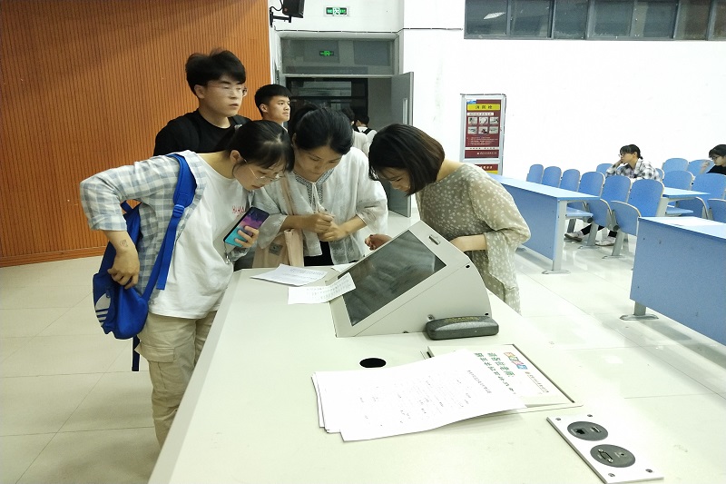 5月11日,计算机与软件工程学院2019届毕业生小组论文答辩工作在文津校区东一教学楼17个教室分别展开。本次毕业生论文答辩工作由计算机与软件工程学院执行院长周鸣争主持,学校教学督导魏中俊、李明杨教授参与指导,学院专职教师与企业指导老师共同参与本次答辩工作。(图为周鸣争院长为答辩学生简要介绍答辩流程)参加本次毕业论文答辩的为我院2019届550名本科学生,其中27名学生直接由指导老师推优进入优秀大组答辩,48名学生延期至二轮答辩,31名学生参与毕业设计学分置换,其余444名学生参与小组答辩。今年答辩使用“中国知网”大学生论文检测系统进行查重,只有符合要求的学生才有资格进行一轮论文答辩。(图为答辩学生正在进行论文答辩)本次答辩主要分为三个环节,第一个环节是学生自述情况,第二个环节是由答辩老师针对论文内容提出相关问题,由同学现场回答。第三个环节是对同学对自己的毕业设计(论文)项目进行现场演示。在自述情况环节,每位学生首先阐述选题原因、系统设计与实现的具体步骤。随后老师进行提问,各位同学针对老师