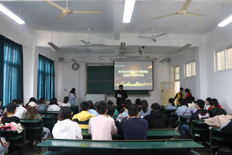 为给学生提供一个良好的实习平台,5月8日下午,在文津校区西三教学楼举办艺术设计学院2016级学生企业实习宣讲大会。本次大会分为四个专场,分别在西三308、309、408、409四个教室举行。邀请了上海正新集团有限公司、芜湖康博建筑节能装饰工程有限责任公司、安徽美地美电器销售有限公司、上海英斯佛朗环境景观规划设计有限公司、德力西(芜湖)有限公司及创促中心共6家企业参加。艺术设计学院副院长叶克军、16级辅导员仲甜、部分专业课指导老师、以及近两百名2016级学子参与了此次宣讲大会。 (图为宣讲大会现场)此次宣讲大会分为企业宣讲和学生、企业现场双选两个环节。会议开始,各著名企业代表通过播放PPT的方式全面地展示了公司情况。其中上海英斯佛朗环境景观规划设计有限公司代表分别从企业的现状、做过的项目以及就业具体方向等方面为在场的学生勾勒了美好的就业蓝图。安徽美地美电器销售有限公司、德力西(芜湖)有限公司以及创促中心等企业代表也纷纷上台进行宣讲,激扬的话语给在场的每一位学生带来激昂斗志。在随后的学生、企