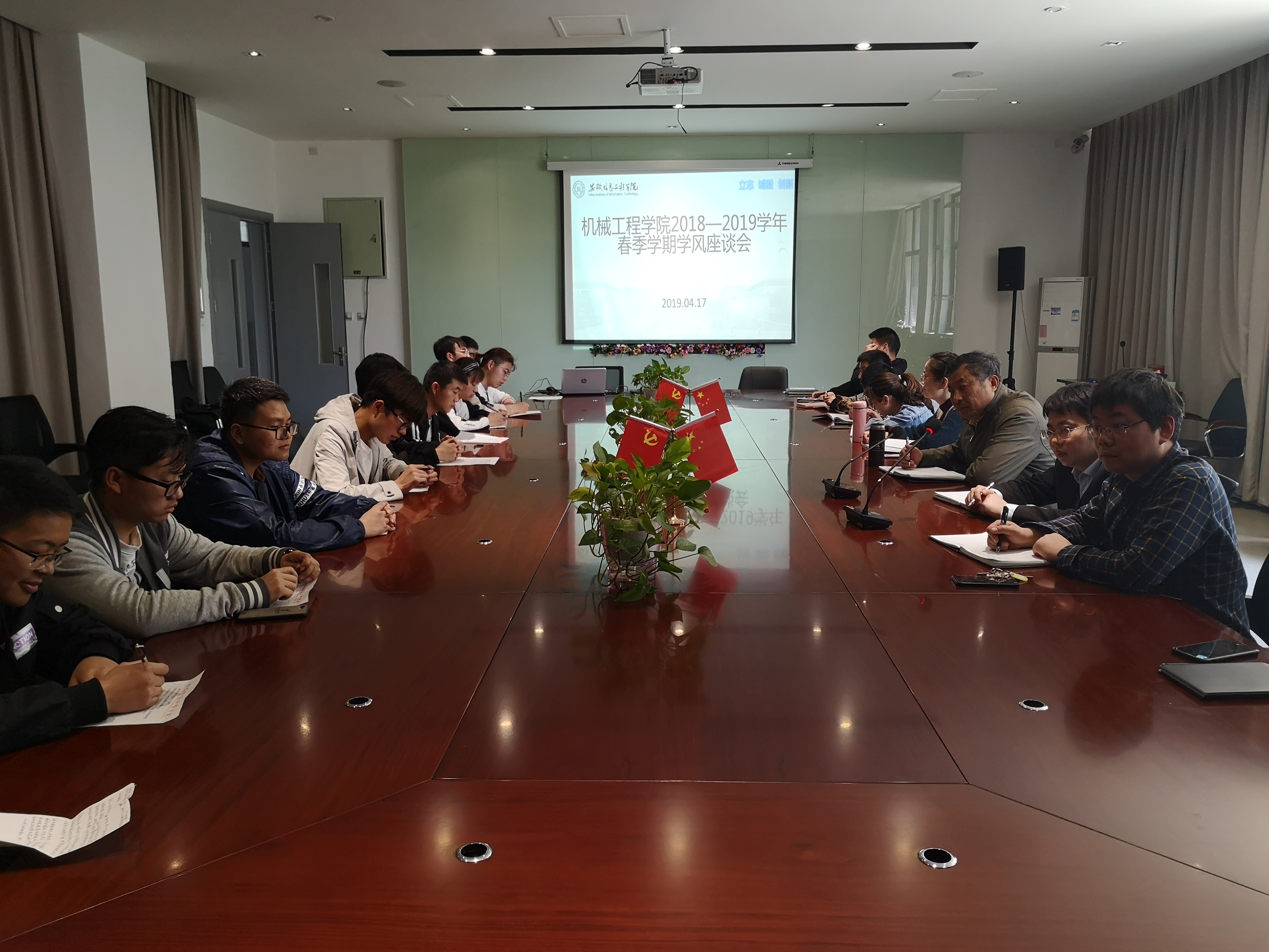 4月17日下午,机械工程学院举办2018至2019学年春季学期学风座谈会。机械学院2017级12名学生代表参加了此次座谈会,机械学院院长柴阜桐、院长助理于鹏、学工主管夏俊以及全体辅导员出席座谈会并与学生现场交流。本次座谈会由夏俊主持。(机械工程学院2018至2019学年春季学期学风建设座谈会)座谈会上,柴阜桐结合自身工作经验,和同学们分享关于学风和班级建设的经验,要求同学们明确大学学习目标,树立专业自信,找准个人定位。座谈会中,各班代表积极发言、气氛热烈,畅所欲言反馈学情,提出了很多意见和建议。座谈会上,各位老师结合所据了解的实际情况,就大部分同学的提问进行解答并给予针对性建议。柴阜桐最后在总结中指出,学习不能单纯依靠老师的教,更需要学会利用时间、平台、资源自己去学,增强自主学习能力,这也是学风建设的最终目的。(学生代表发言)(柴阜桐作总结)此次座谈会为师生构建了和谐的交流平台,为学院的教学管理提供了学生反馈的渠道,促进了沟通,拉近师生距离,对学风建设以及学生管理工作的优化提升有着积极的
