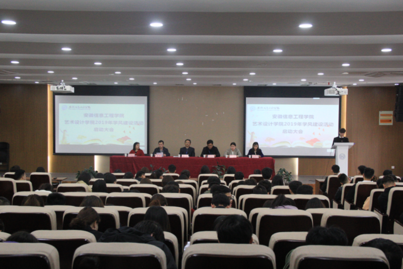 为进一步加强我院学风建设,落实各项学风建设细则,推动良好学风形成。3月29日中午,艺术设计学院在文津校区东二五楼报告厅召开学院2019年学风建设活动启动大会。艺术设计学院执行院长,副院长叶克军,学工主管金亮,辅导员仲甜、孙境泽、陈砚如及全体学生干部共计230余人参加了本次大会。启动大会由金亮主持。 (图为会议现场)启动大会上,金亮宣读了《安徽信息工程学院艺术设计学院2019年学风建设活动实施细则》,该细则从做好学业规划指导教育、做好榜样引领示范教育及做好大学生素质养成教育三个方面加强教育引导,奠定优良学风养成的思想基础。以提高“九率”水平,形成优良学风养成的常态抓手。加强关心服务,提供优良学风养成的人文关怀。加强细化例化,保障优良学风养成措施落地。最终引导学生从“要我学”走向“我要学”,养成终身学习的习惯。 (图为金亮宣读学风建设活动实施细则)艺术设计学院学生会主席杨一名同学作为学生代表宣读《学风建设倡议书》,倡议全体同学端正学习态度,认真学习专业知识,严于律己,严格遵守各项规章制度,努