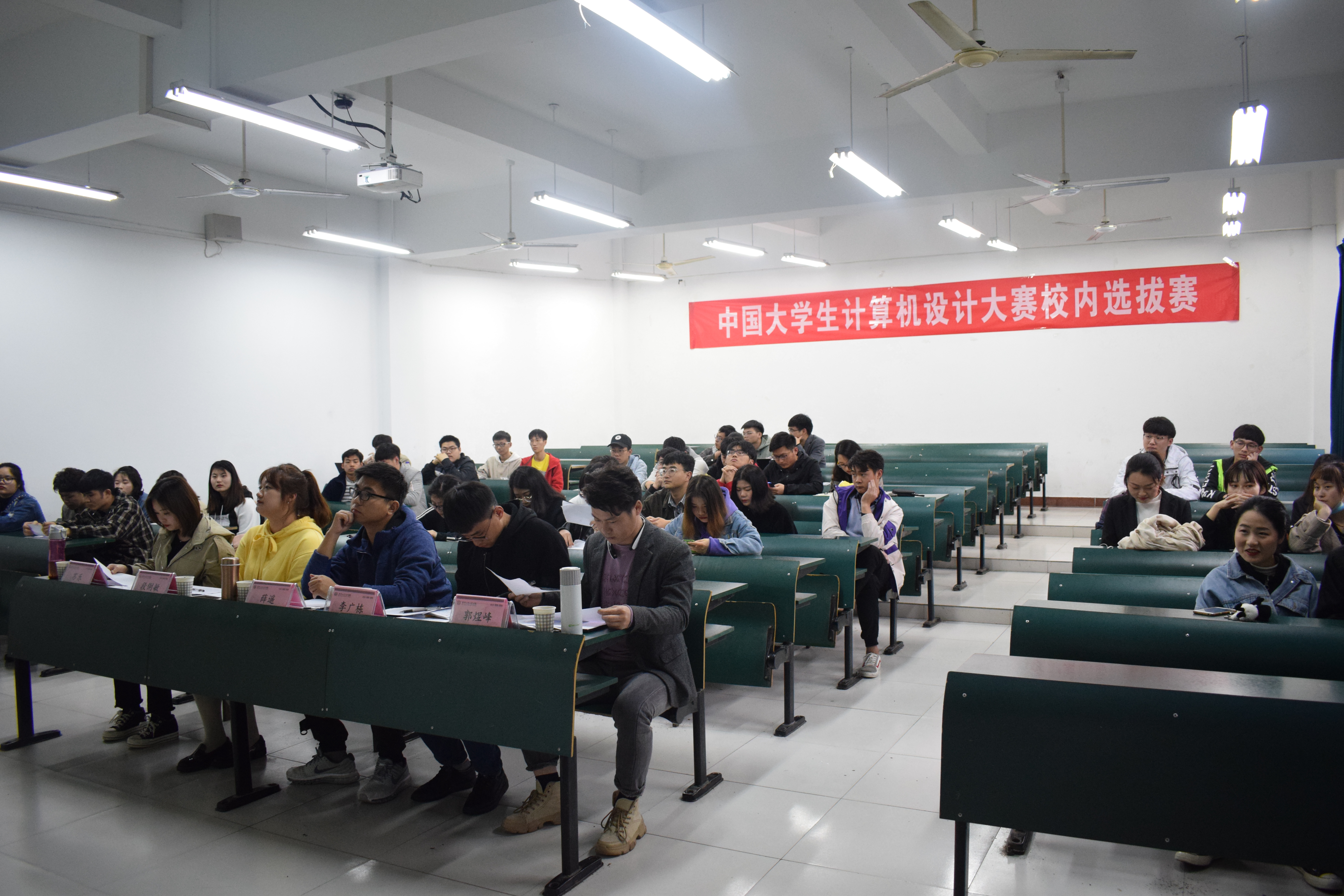 为培养学生德智体美全面发展、提升学生运用信息技术解决实际问题的实践能力、创新创业能力,同时遴选参与中国大学生计算机设计大赛的实力队伍,我校于3月27日、28日开展了2019年中国大学生计算机设计大赛校内选拔赛。本次大赛由校教务处主办,计算机协会与设计动漫协会承办,特邀了各学院的专业老师担任评委。经过初选,共有近400组项目晋级校内选拔赛。(图为艺术设计学院评审现场)校内选拔赛分组别进行,艺术设计学院于2019年3月27日下午3:30在西三教学楼201、202教室,对数媒专业组、数媒微电影、计算机音乐创作普通组、信息可视化、数媒普通组、数媒动漫游戏和数媒民族元素这七大类进行评审答辩。(图为计算机学院和大数据学院评审现场)计算机与软件工程学院和大数据与人工智能学院于2019年3月28日19:00在东二108、109、111三个实验室内同时进行,对微课与教学辅助、人工智能、物联网应用、软件应用与开发、大数据、信息可视化六个大类进行评审。(图为学生进行项目ppt展示) (图为学生进行项目pp