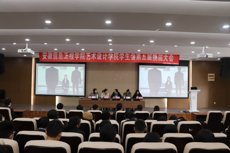 3月6日下午,艺术设计学院学生会第五届换届大会在文津校区东二五楼报告厅隆重举行。艺术设计学院学工主管金亮老师,团总支书记仲甜老师以及辅导员杨爽、孙境泽、陈砚如出席大会,学生会全体成员参加大会。本次大会由学生会委员姚婷主持。 (图为大会现场) (图为全场起立奏唱国歌) 大会在雄壮的国歌声中开幕。首先学工主管金亮老师对本届学生会新成员的到来表示热烈欢迎和祝贺,对上一届学生会干部的付出表示感谢,他指出,每位学生会成员要正确处理好工作与学习的关系;要团结和睦;要言行一致,起到表率带头的作用。随后,艺术设计学院第五届学生会主席黄海涛上台发言,对过去学生会工作做出了激情洋溢的总结,并对新晋委员的到来表示欢迎。接着,第六届学生会主席杨一名和新晋成员代表范正宇分别上台发言。杨一名从自己的工作经验出发,给学生会干部干事提出了许多宝贵的意见。范正宇对今后的工作做出展望,并希望大家在今后不忘初心,砥砺前行。最后,参会领导老师为学生会干部颁发荣誉聘书,艺术设计学院团总支书记仲甜老师对新晋学生会成员进行了