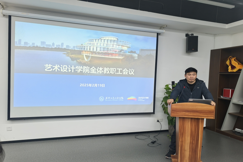 蛇腾瑞气启新程,花绽芳华绘锦图。为进一步凝心聚力,确保新学期各项工作有序开展,2月19日下午艺术设计学院在学院会议室召开新学期全体教职工会议,会议旨在以统一思想为基石,以创新行动为驱动,全面开启教育教学质量提升的新征程。会议由副院长周建主持,全体教职工参会。(图为周建主持会议) 会议伊始,周建通报了2024年学院组织目标的完成情况,他详细剖析了各项扣分项,并对教职工各序列的考核结果进行了说明。通过这一环节,教职工们对过去一年的工作有了更加清晰的认识,也为新的一年提供了宝贵的经验和教训。接着,周建说明了召开本次会议的目的:规划并梳理2025年学院工作计划和组织目标任务,分为关键业绩指标和常规工作指标。并号召全体教职工在新学期里继续发扬团结协作、勇于创新的精神,以饱满的热情和务实的态度投入到教育教学工作中,为学生的全面成长和学校的持续发展贡献力量。(图为会议现场) 钱琳对新闻宣传工作提出相关要求,强调“三审三校”制度。并就工会工作、行政工作、学生工作和党建工作进行了相关部署。呼吁全体教职工践