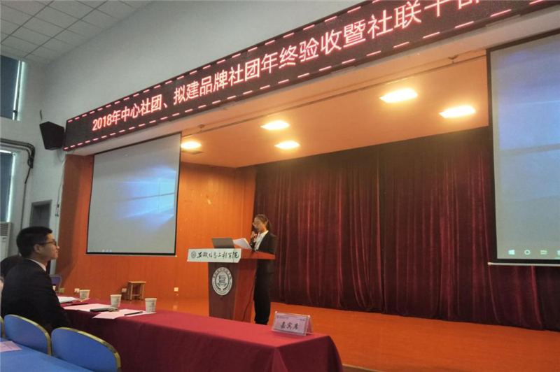 本网讯 2018年中心社团、拟建品牌社团年终验收暨社联干部述职大会于 12月22日上午8时在新芜校区A2E101顺利举行。校团委汪菁、夏芸老师,各拟建品牌社团、中心社团负责人,社联全体成员出席本次会议。(图为大会现场)会议伊始,夏芸强调了社团建设对于学院校园文化建设、学生综合素质养成的重要意义,她号召社联与社团负责人一起,恪尽职守,发挥主观能动性及带头示范作用,为社团活动的开展保驾护航。 (图为参会嘉宾) (图为夏芸讲话)社团联合会主席董云亮通过大量的数据分析,综合回顾了2018年社联工作成果,分析不足之处,确定来年工作目标。接着,各部门依次述职,展现各项活动中的社联工作风采。 (图为董云亮述职) (图为社联学生干部述职) (图为社联学生干部述职)随后,拟建品牌社团、中心社团负责人上台汇报。智能制造协会“西门子杯”中国智能制造挑战赛,取得了全国初赛(华东赛区)6项奖项;创客梦工厂全员在2018年共取得了大大小小学科竞赛类奖项200余项;数学建模协会、KAB创意俱乐部等社团举办了如数独比赛