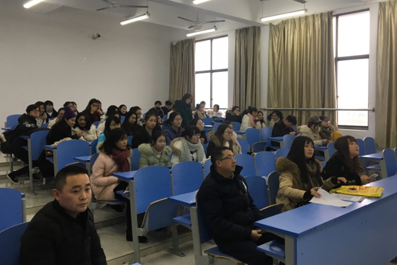 本网讯 2018年12月27日,通识教育与外国语学院面向英语专业15级毕业生,召开了专业毕业设计(论文)布置会。会议由英语教研室陈蕾主任主持,参会人员有毕业论文各小组指导教师,以及15级英语专业全体毕业生。会议主要针对应届毕业生毕业论文撰写相关问题进行指导。15级毕业生刚刚结束实习和考研,在毕业论文写作和整个毕业考核流程上依旧存在一些疑问。针对这些疑问,陈蕾老师给予了全面的解答。首先,她向学生们说明了整个毕业论文的实施计划和每一阶段的具体工作和时间安排,并提醒学生要按时按质完成指导教师布置的任务;然后,她着重强调了论文撰写过程中的注意事项,如写作规范、格式要求、论文重复率等;之后,针对每一条事项,陈老师进行了细致地讲解;最后,陈老师回答了学生的部分提问,并寄语 “写毕业论文是一个艰难而又快乐的过程;intensive and arduous! Enriching and enjoyable!” 会议后,各小组指导教师分别和组内学生继续开展讨论。 (毕业设计布置会现场)(陈蕾老师主持现