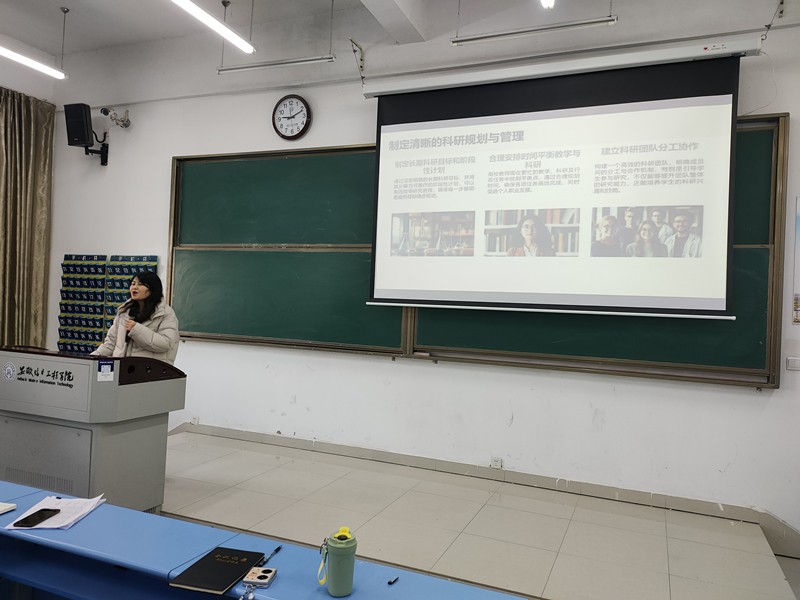 本网讯 2025年1月13日上午,通识教育与外国语学院在 A1博雅楼N104 召开全体教职工会议。本次会议由副院长(主持工作)罗从文主持,围绕分享交流与工作部署两大主题有序展开,为学院发展注入新动力。会议伊始,胡叶婷副院长率先分享个人科研工作经验,并从选题、论文架构设计、文献及数据库选择、写作过程到选刊与投稿等方面,对学术论文写作进行了细致解读,为教师们提供了宝贵的科研思路。 (图为胡叶婷作科研论文撰写分享)随后,实验实践中心副主任韩玉龙带来 2023 年教育部 “中西部高等学校青年骨干教师国内访问学者项目” 的经验交流。他详述了访学项目申请历程,还分享了科研项目申请的注意事项与规划,拓宽了教师们的学术视野。 (图为韩玉龙作访问交流分享)数学教研室叶闻副主任则聚焦数学教研室的竞赛安排,对数学建模竞赛、统计建模竞赛、大学生数学竞赛和考研数学四个方面的工作时间与人员安排作了详细说明,力求在明年的竞赛中再创佳绩。 (图为叶闻作数学教研室竞赛安排)黄飞副院长介绍了 2025 年度全国教育工作会议