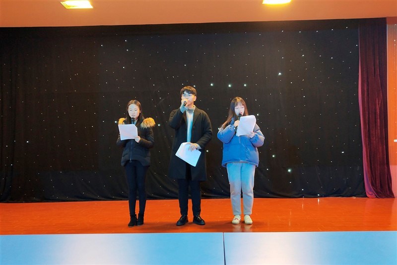 本网讯 为迎接新年的到来,增强学院大家庭的凝聚力,加强同学间合作交流,增进师生关系,丰富校园生活,12月24日晚7:00通识教育与外国语学院于教室A2E101隆重举行了2019年元旦晚会。本场晚会是对我院全体同学与老师致以真挚的问候与新年的祝福,是开启我院2019年新面貌、新风采、新形象的一场视觉、听觉盛宴。 (到场的领导、老师) 炫目的灯光打在每一张写着幸福的笑脸上,大屏幕上播放学生会全体成员共同录制的视频祝福,使温暖的气氛在不断蔓延。今夜我们欢聚一堂,共同庆祝元旦,今夜我们载歌载舞,一起憧憬未来,开场歌曲《相亲相爱》,感染着在座的每一位同学,由此2019元旦晚会正式拉开帷幕。《solo》劲歌配热舞立刻吸引所有人的目光,燃起每个人的热情,现场尤为热烈。奔放的舞蹈、潮流的气息、时尚的脚步、跳动的音符,《九九巴比龙》舞蹈将全场气氛推向高潮,后面的京剧又引来阵阵惊呼。有欢喜就有悲壮,《映山红》紧紧牵动着我们的心,在那段艰苦时期,每个甘愿牺牲自己的人都叫英雄,《映山