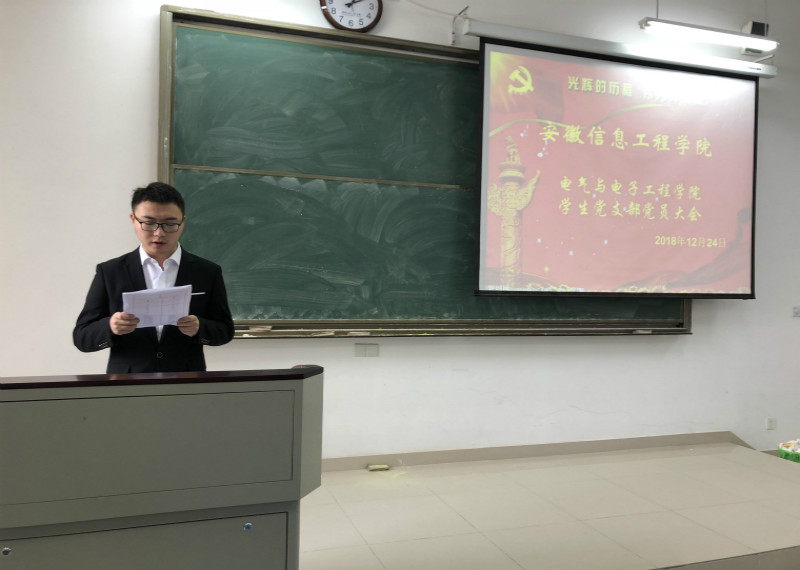 12月24日中午,电气与电子工程学院学生党支部党员大会于A3N108教室顺利召开,学院学生党支部书记吕海涛主持会议,李超君等9名正式党员以及王欣桐、宋长鑫等22名发展对象与会。