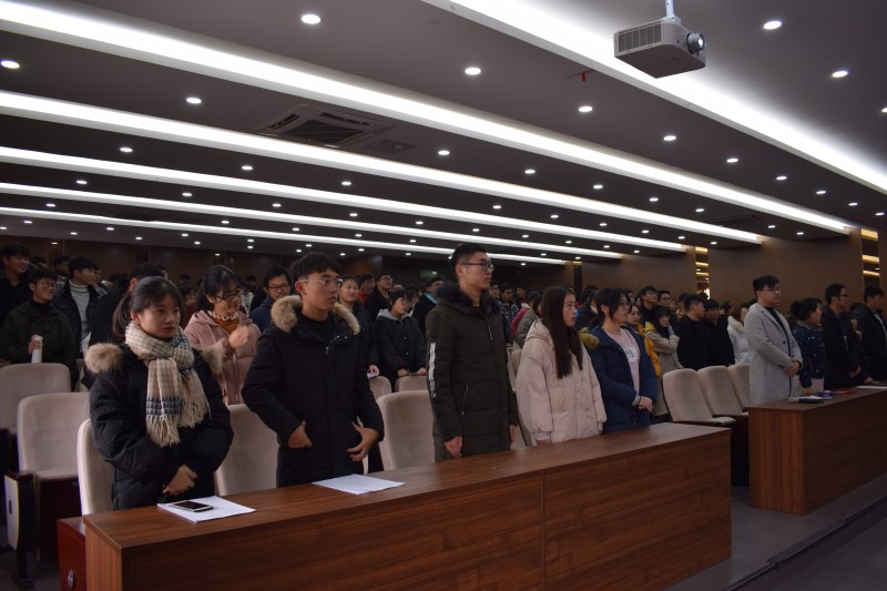 为进一步提高学院学生整体思想道德品质与综合素质,培养学生干部自我管理的集体主义观念,使学生工作更加出色,2018年12月12日,计算机与软件工程学院和大数据与人工智能学院团总支年度总结大会在东二503报告厅顺利召开,参会嘉宾有学院团总支书记夏林、团总支副书记随小莉以及团总支三位委员,16、17、18级全体团干共同参会。(图为全体参会人员起立、奏团歌)总结大会上,全体成员起立,团歌轩昂奏起,高昂的歌声响彻会场,也奏响在团干们的心中。团歌奏罢,由团总支权益委员余嘉伟进行年度工作汇报。余嘉伟用生动的语言向大家展示了2017-2018学年度我院团总支的工作历程与所得成就,并表达了对后期各年级团内工作的期望和信心。(图为随小莉老师公布获奖团支部名单)随后,随小莉老师为2017-2018学年荣获校“先进团支部”的集体颁发奖金,获奖团支部分别为院学生会团支部,网络1701团支部,软件1701、1702、1703、1706团支部,软件1603、1606团支部。随老师提到重要的并非荣誉与奖金,而是团总支对