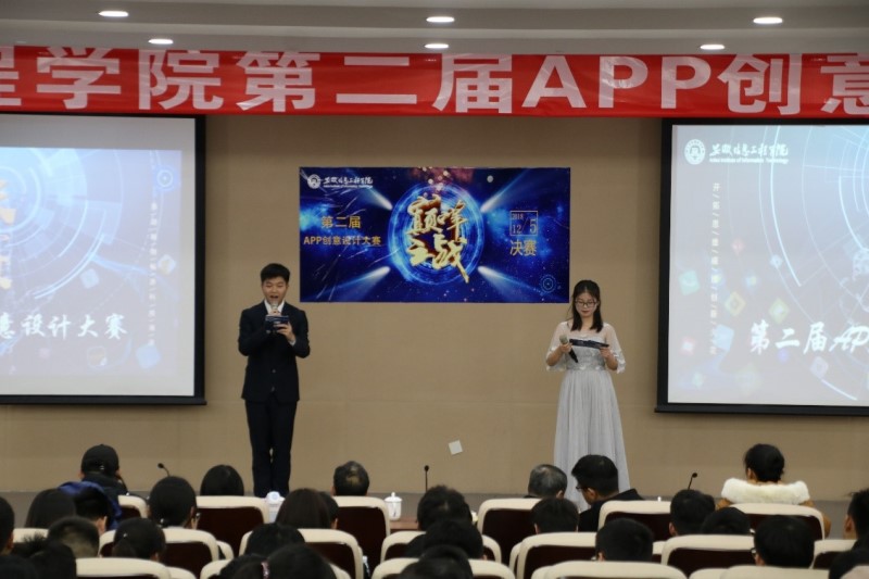 为培养学生的创新意识、移动互联网产品思维及解决社会实际需求的能力,历经三个月的紧张筛选和精心筹备,第二届APP创意设计大赛决赛于2018年12月5日在文津校区东二五楼报告厅鸣锣开赛。 (图为比赛现场主持人开场白)此次大赛以“开拓思维,碰撞创新火花;结合实际,争创实用软件;展翅翱翔,畅游科技海洋”为主旨。大赛邀请了副校长陈跃东,计算机与软件工程学院和大数据与人工智能学院执行院长周鸣争、副院长戴平,各学院老师代表和大赛指导老师担任评委。 (图为评委老师认真参与评审)本次大赛面向文津和新芜两个校区,共计701个参赛选手,188组参赛队伍,经过层层选拔,最终15组团队脱颖而出进行巅峰对决。决赛规定每组队伍有六分钟PPT陈述时间、三分钟答辩时间。此次决赛项目涉及母婴、旅行、农业、语音、传统文化、办公、生活、科技等各方面。团队代表们的舞台表现或沉稳或风趣或激昂,面对评委老师们的连连提问,他们有条不紊地用自己的学识机智化解,