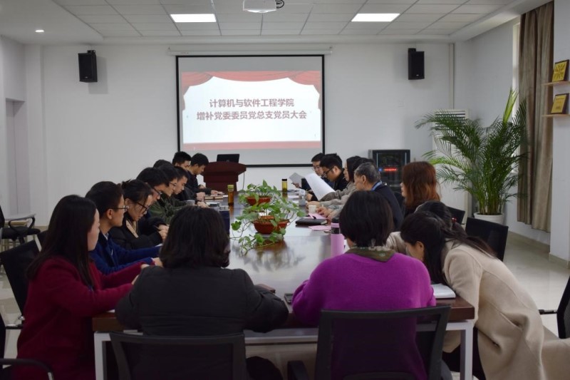 为落实省教育工委10月31日会议关于组织部长、宣传部长、统战部长担任学校党委常委工作的会议精神,应学校党委要求,12月5日中午,计算机与软件工程学院在文津校区东一210会议室召开增补党委委员第二轮推荐会议。校党委书记汪奇燕,计算机与软件工程学院执行院长周鸣争、副院长戴平、行政与党务主管张齐云、学工主管袁卫家及全体正式党员参与了此次会议。会议由周鸣争院长主持。 (图为会议现场)根据会议流程,周院长首先报告了应到正式党员人数、实到人数,监票人与计票人名单,并传达了学校贯彻省委教育工委有关会议精神的要求和主旨。随后,汪书记介绍了三名初步人选候选人的产生过程、缘由以及他们的个人情况和推荐流程和规则。 (图为汪书记讲话) 周院长宣布投票开始,在场全体党员以无记名投票的方式在3名候选人中选择其中2人作为推荐人选。党员投票后,当场统计并公布3位初步人选候选人得票数。确认无异议后,确认推荐人名单。最后,汪书记代表学校党