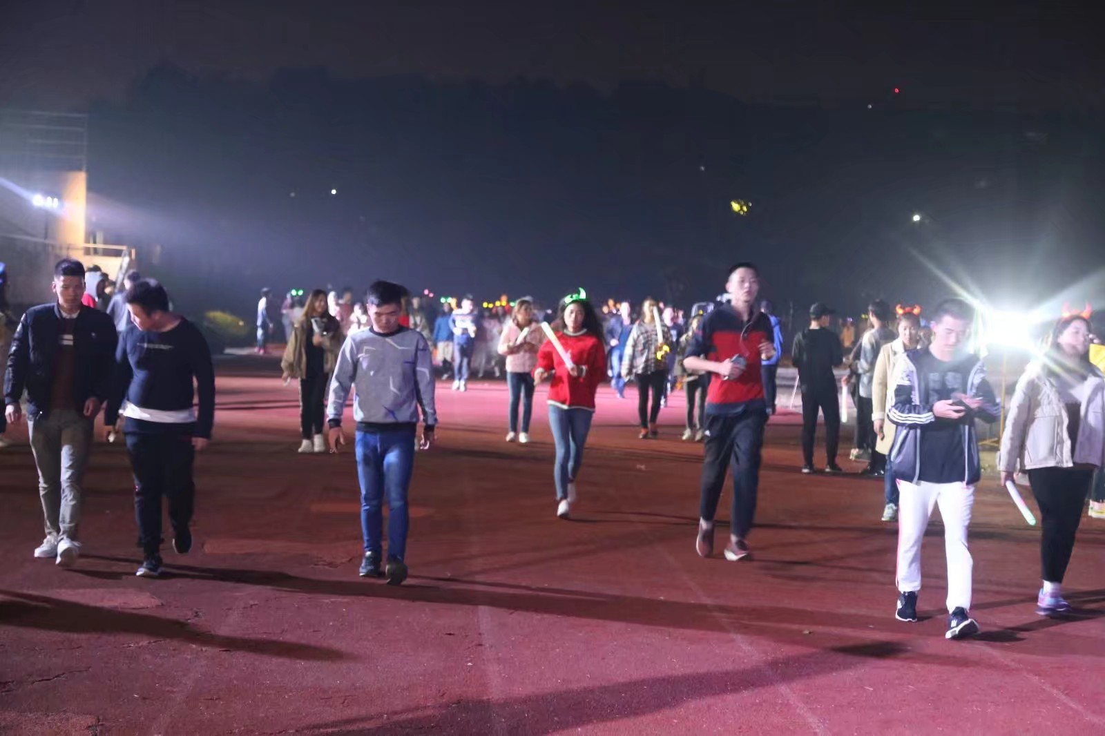 为深化学校体育教学改革,进一步落实 “三位一体”体育教学模式,实现课内学习与课外锻炼有效衔接,促进学生积极主动地参与运动、享受运动,通识教育与外国语学院体育教研室、学生处(团委)共同发起的“千人荧光夜跑”活动于11月27日晚9点,在我校新芜、文津两校区同时拉开帷幕。 1200多名学生走下网络、走出宿舍、走向操场,伴随着开跑口令的发出,他们头戴荧光饰品,手握荧光棒,两校区的操场上荧光闪动,活力四射,给冷清的冬夜增添了青春的活力。本次“荧光夜跑”活动将奔跑与娱乐相结合,让同学们感受娱乐的同时还指引他们享受跑步、享受运动。 (文津校区活动进行时) (新芜校区活动进行时)课外体育锻炼是学校体育教学不可缺少的重要组成部分,学校推行以俱乐部教学为主线,以课外活动为载体,以拓