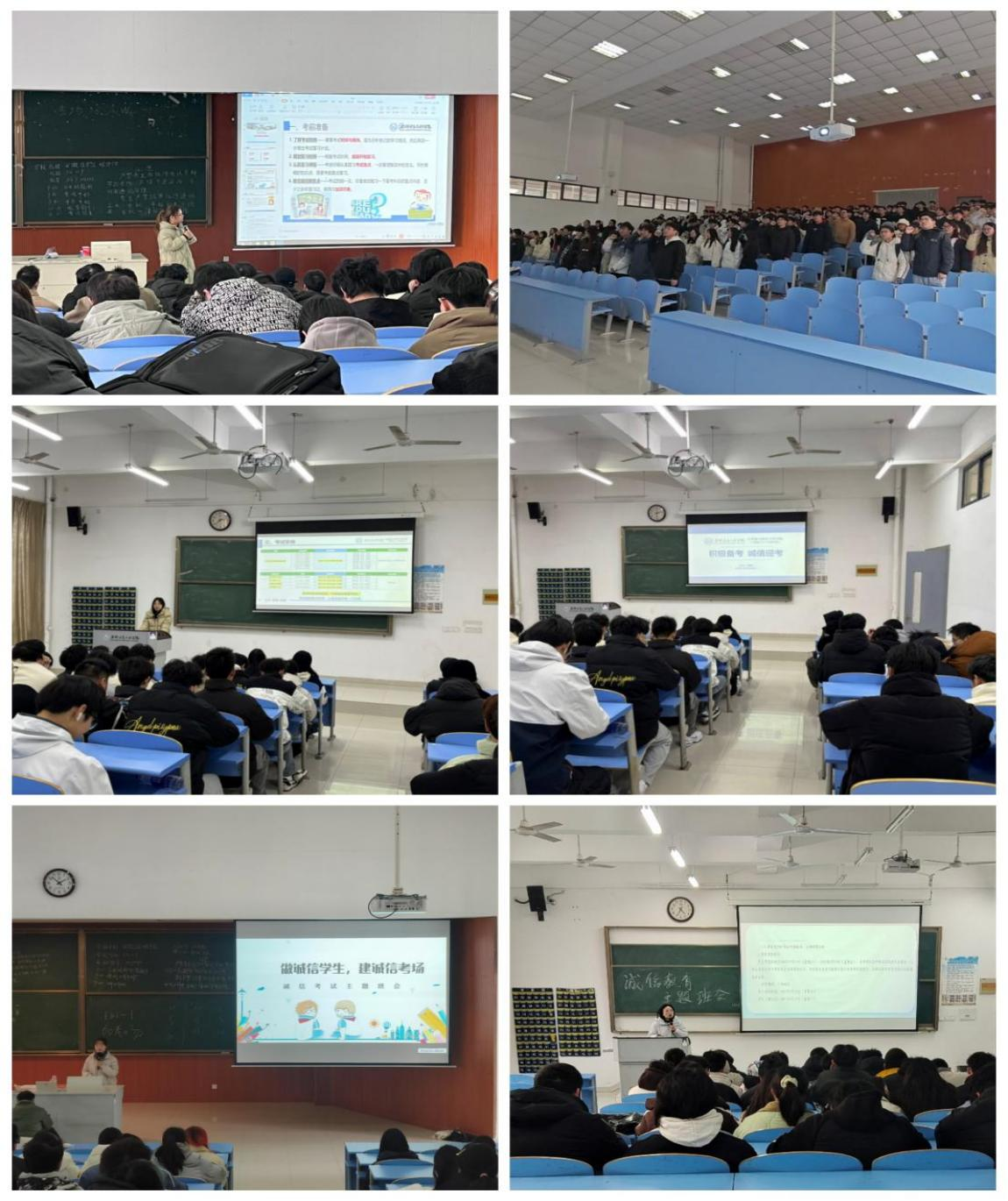 为全面贯彻落实学校考风考纪要求,倡导“严肃考风考纪、弘扬优良学风、文明诚信应考”,培养学生诚实守信品德,切实保障考试公平公正,计算机(大数据)学院于近期深入开展诚信考试宣传教育活动,积极营造健康向上的考试环境。学院辅导员深入小班开展诚信考试主题教育班会,组织学生学习《<普通高等学校学生管理规定>(教育部41号令)安徽信息工程学院实施办法》《安徽信息工程学院学生违纪处分办法》等制度文件,详细解读考试作弊行为的界定及相应处罚措施,让同学们对考试纪律有清晰深刻的认识。同时建议同学们针对不同考试科目制定合理的复习计划,高效利用时间,提高学习效率。(图为辅导员开展主题班会部分照片)为进一步强化学生的诚信意识,学院组织全体学生签署诚信考试承诺书。承诺书上明确列出考试期间应遵守的各项规定,包括不作弊、不抄袭、不协助他人作弊等。学生们在承诺书上郑重签名,并表明会遵守学校规定与考场规则,诚信考试,杜绝舞弊。(图为部分学生签诚信考试承诺书现场)(图为各班级诚信考试承诺书)与此同时,学院精心设计制作的诚信考试