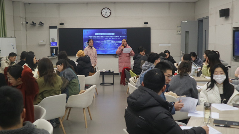 本网讯 2024年12月25日,教务处邀请厦门大学教育研究院范怡红教授作为主讲嘉宾,以“如何激发学生学习积极性与创造潜力:项目式课程设计的策略、思路与方法”为主题,开展了第八期穷理沙龙活动。本次活动由管理工程学院副院长卢晓莉主持,各学院教师代表积极参与。(卢晓莉主持)为了增强教师们的参与感,活动开始前,范教授给参加活动的教师提供了预习资料。活动现场分为7个小组进行。在第一环节中,范教授引导各组进行了暖场和小组团建活动,通过制作桌签、个人介绍、共同愿景和组名Logo等方式增进彼此了解。随后,各组分享了小组构成、组名及共同愿景。在第二环节,范教授详细讲解了项目式教学的课程与教学设计,从“教育是把篮子装满,还是把灯点亮?”这一问题出发,深入探讨了课程与教学设计的基本思考、教学七要素与有效教学、教师角色的转变、以学生为中心的教学方法以及如何激发学生的学习兴趣和主动性。她特别强调了在项目式教学中教师角色的转变,并给出了一个具体的项目式教学流程图。此外,范教授还以西南交通大学跨学科课程建设为例,鼓励