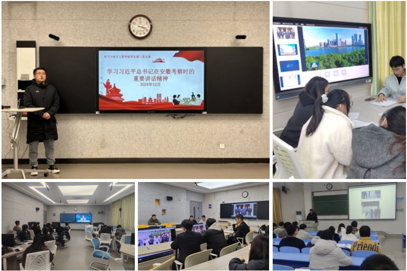 近日,电气与电子学院各功能型党支部组织全体学生党员认真学习并深刻领会习近平总书记在考察安徽时发表的重要讲话精神。此次学习活动旨在将总书记的讲话精神转化为实际行动,进一步推动大学生党员的思想进步和实践能力提升。习近平总书记在考察期间,深入历史文化街区、科技创新园区等地,详细了解了安徽在经济社会发展、科技创新、文化传承等方面的成果和经验。他强调,要深入贯彻党的二十大精神和二十届三中全会精神,全面贯彻新发展理念,发挥多重国家发展战略叠加优势,在打造具有重要影响力的科技创新策源地、新兴产业聚集地、改革开放新高地、经济社会发展全面绿色转型区上持续发力活动伊始,各党支部书记详细介绍了习近平总书记考察安徽的背景和重要意义,并带领全体党员共同学习了讲话原文。通过学习,党员们深刻认识到,总书记的讲话不仅是对安徽工作的全面指导,更是对全国广大党员干部的殷切期望和嘱托。在总结会上,各学生党支部书记对全体党员提出了学习要求,希望大家能够继续深入学习习近平总书记重要讲话精神,将其内化于心、外化于行,为党的事业贡献