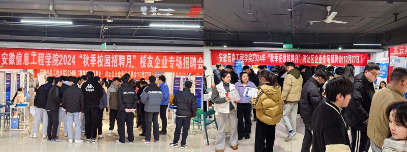 12月27日,我校2024“秋季校园招聘月”校友企业专场招聘活动在大学生活动中心招聘大厅顺利举行,此次活动是我校“欢聚忆韶华 同心谋发展”首届校友会发展峰会系列活动之一,旨在全面落实教育部“秋季校园招聘月”全国高校抢抓秋季校招黄金期一盘棋工作部署要求,充分开拓校友企业资源,全力助推我校2025届毕业生充分高质量就业。招聘会的顺利举行,宛如一座桥梁,将校友们的深情厚谊与母校的殷切期望紧密相连,为即将踏入社会的学弟学妹们铺就了一条充满希望的职业之路。招聘会现场共邀请了安徽舜宇精工智能有限公司、芜湖威迈斯新能源有限公司、安徽埃易泰克电子科技有限公司、南京五采智电电力科技有限公司、芜湖市教育培训协会等省内外各行各业40余家校友关联重点企业、行业协会组织参会,为我校2025届实习返校、研后毕业生带来了600余个优质招聘岗位,到场参会毕业生达400余人。校友们怀着对母校的感恩之情,带着丰富的行业经验和资源,希望为学弟学妹们提供一展身手的舞台。 (招聘活动现场) (毕业生求职现场)此次校友企业专场招