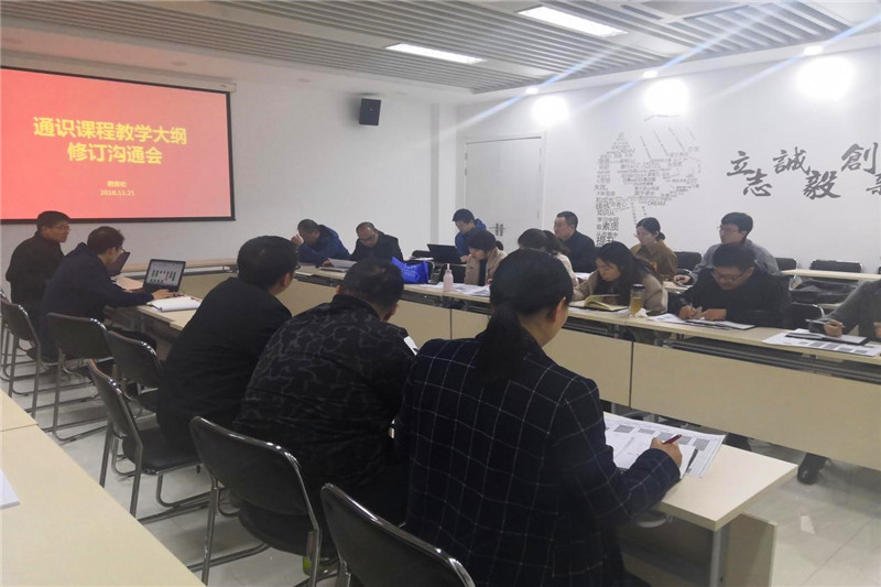 本网讯 为进一步推进工程教育专业认证及专业评估工作,11月21日13:30,教务处举行通识课程新版教学大纲修订工作沟通会,通识教育与外国语学院刘树德院长、刘德胜副院长、胡叶婷副院长、各教研室主任、学生处吴晓处长、樊钒、胡玲、教务处孙辉处长及教务处相关人员参会,会议由孙辉主持。会议开始,孙辉根据教育部下发的“新时代高教40条”文件精神,强调了新培养方案修订的重要性,构建“学生中心--产出导向--持续改进”的课程体系闭环,详细阐释了培养目标及毕业要求的设置依据和要求,按照“调研-培养目标-毕业要求-课程体系”的设计思路,从源头上保证课程设置的必要性,切实做到标准可依,真正地实现人才培养的“反向设计、正向施工”。会中,通识学院各教研室主任以及学生处承担课程的负责人围绕新的人才培养目标和毕业要求,就如何确定通识课程教学大纲的修订原则和框架,如何使课程目标、教学内容、教学要求、教学评价、考核方法等支撑毕业要求的实现,课程达成度的计算等一系列问题展开了深入讨论。(会议现场)此次通识课程大纲修订推进